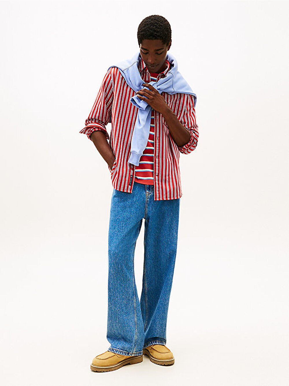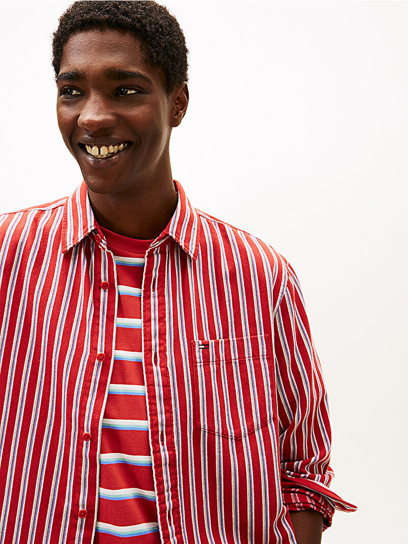 Saf pamuklu dimiden üretilen bu gömleğe rahat bir çekicilik kazandıran, şık çizgi tasarımı ve relaxed fit kesimidir.