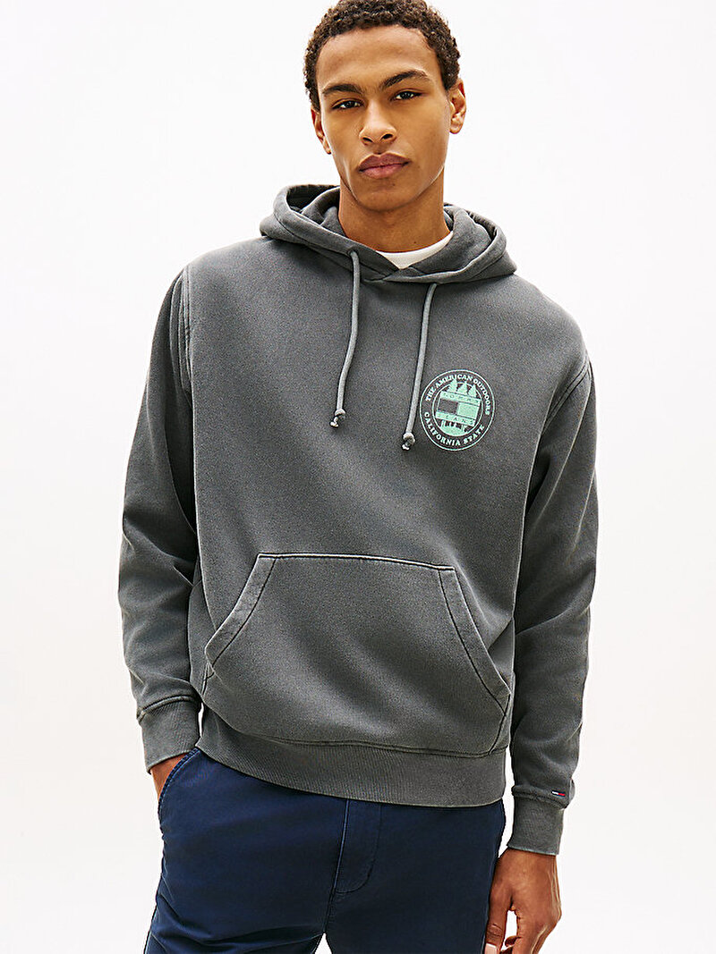 Yıkanmış yüzeyiyle yaşanmış eskitilmiş bir görünüm ve his sunan bu kapüşonlu sweatshirt, sırtındaki ilham veren marka sloganıyla tamamlanıyor.