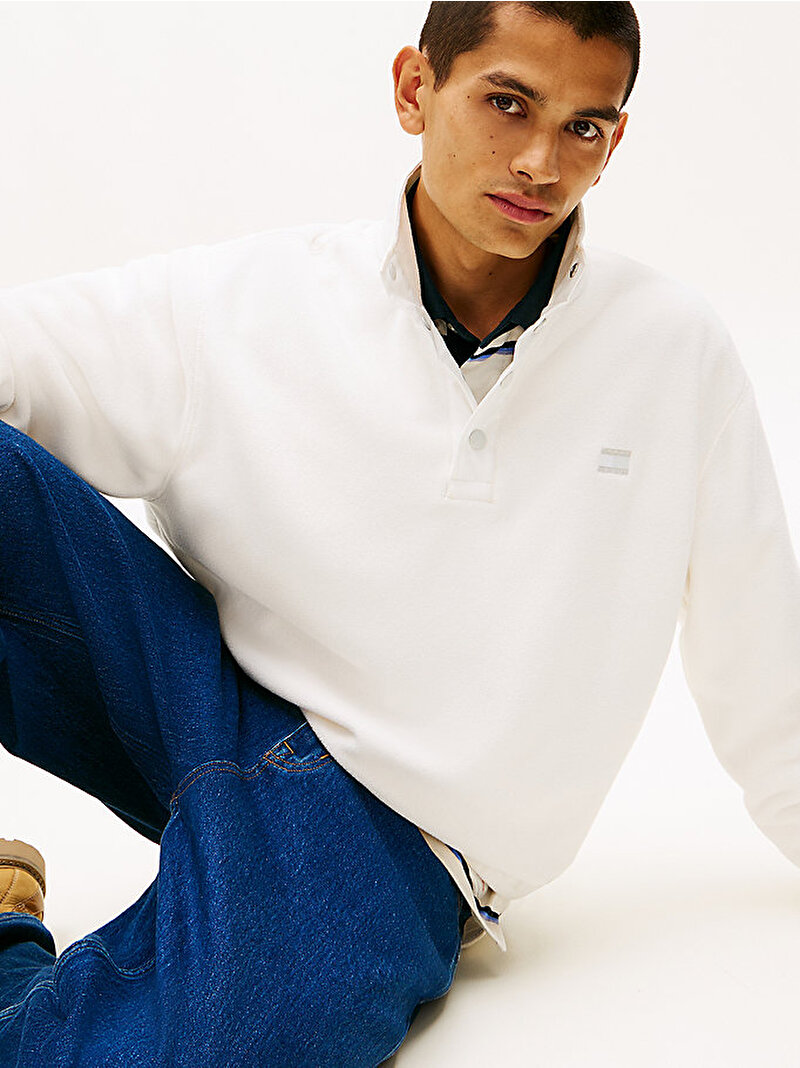Soğuk günlerde bu polar sweatshirt'ü giyin - manşetlerde ve arka kısmında imza tonal markalama bulunuyor.