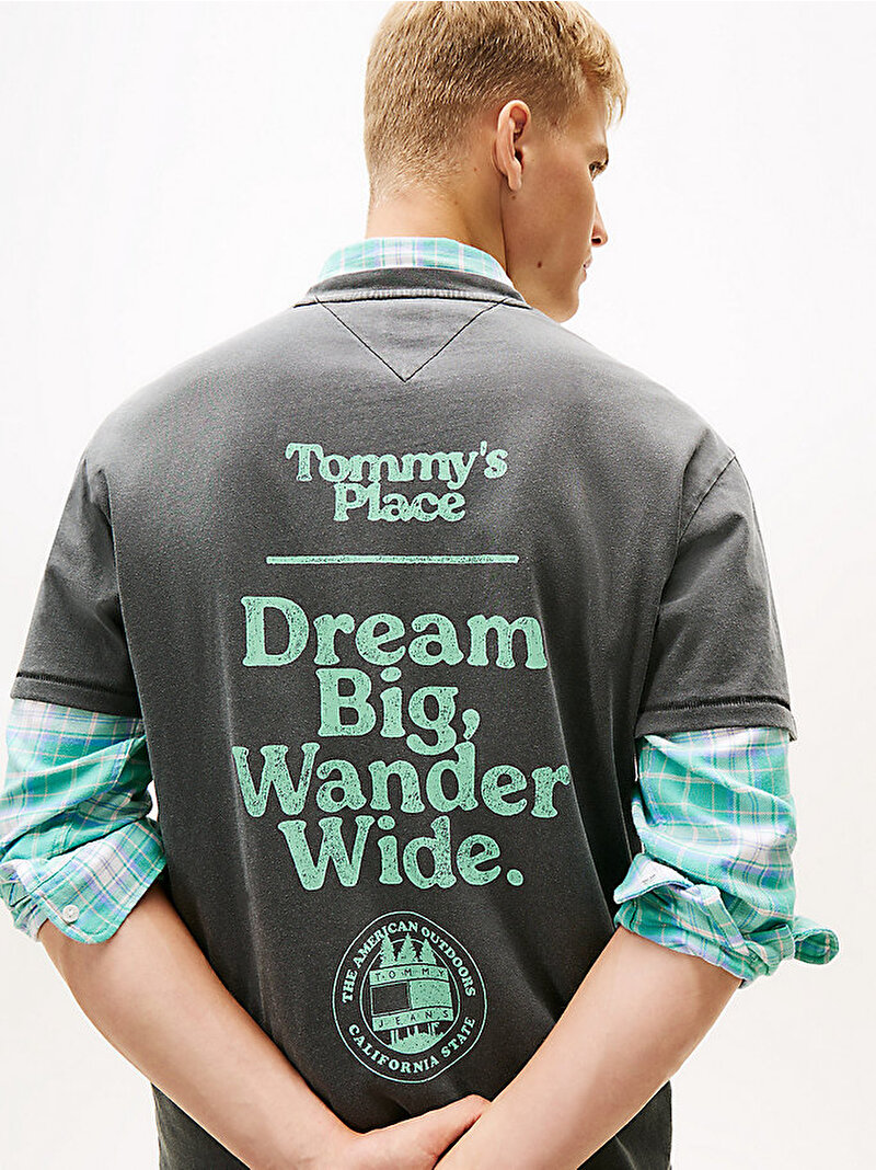 Sırt kısmındaki sloganıyla maceracı bir hava taşıyan bu relaxed-fit tişört, neppy slub pamuklu jarse dokusuyla özgün bir yüzey dokusu sunuyor.