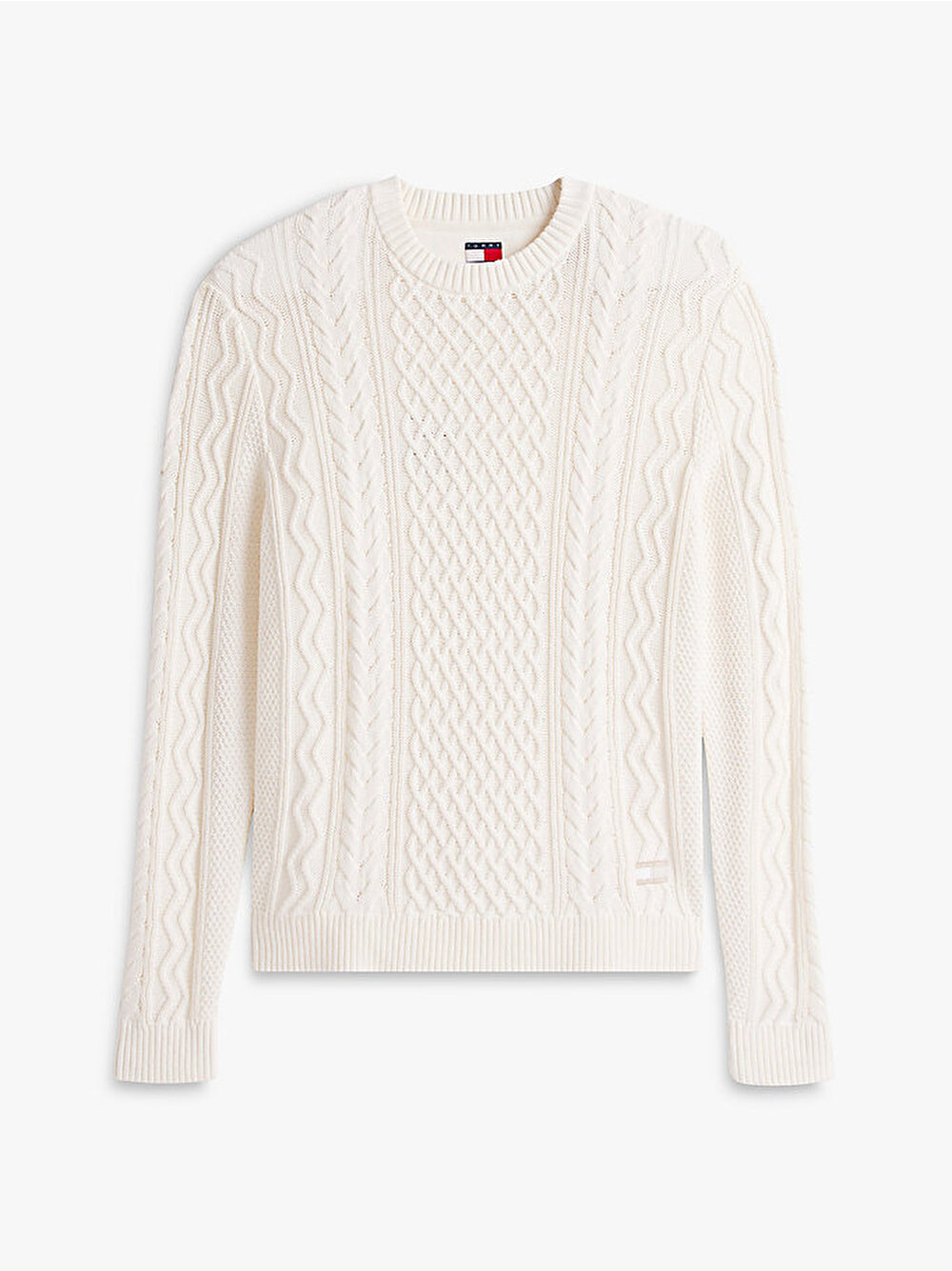 Bu kazak, hem çarpıcı hem de zamansız bir görünüm için slim-fit kesimi klasik kablo örgü tasarımıyla birleştiriyor.