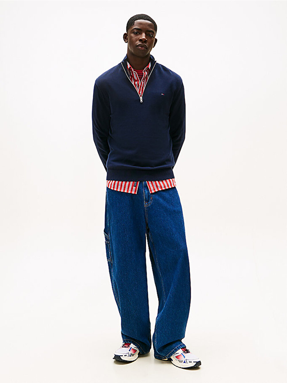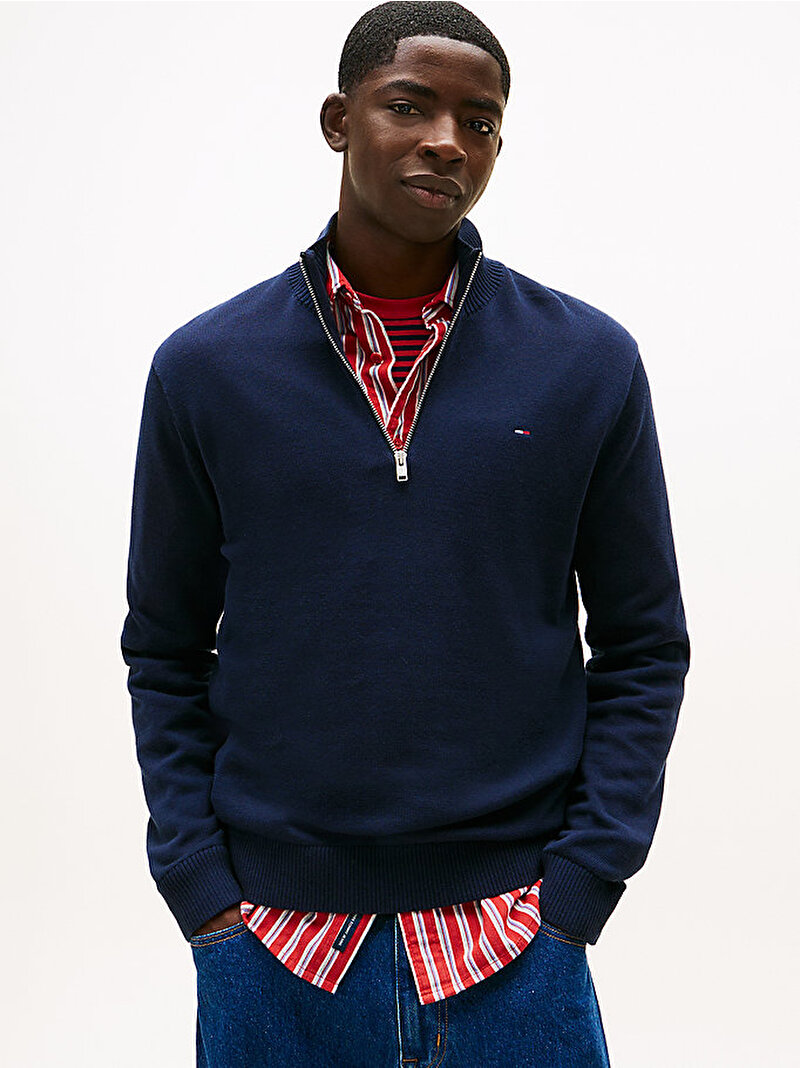 Bu kazak, hafif bir his veren penye pamuktan yapılmıştır, slim fit kesimi ve çeyrek fermuarlı yakası ise sportif bir enerji katar.