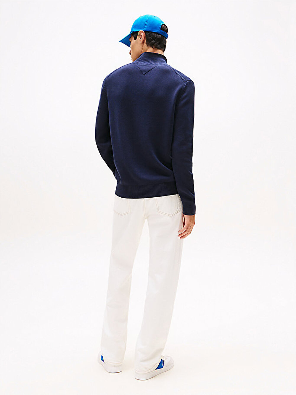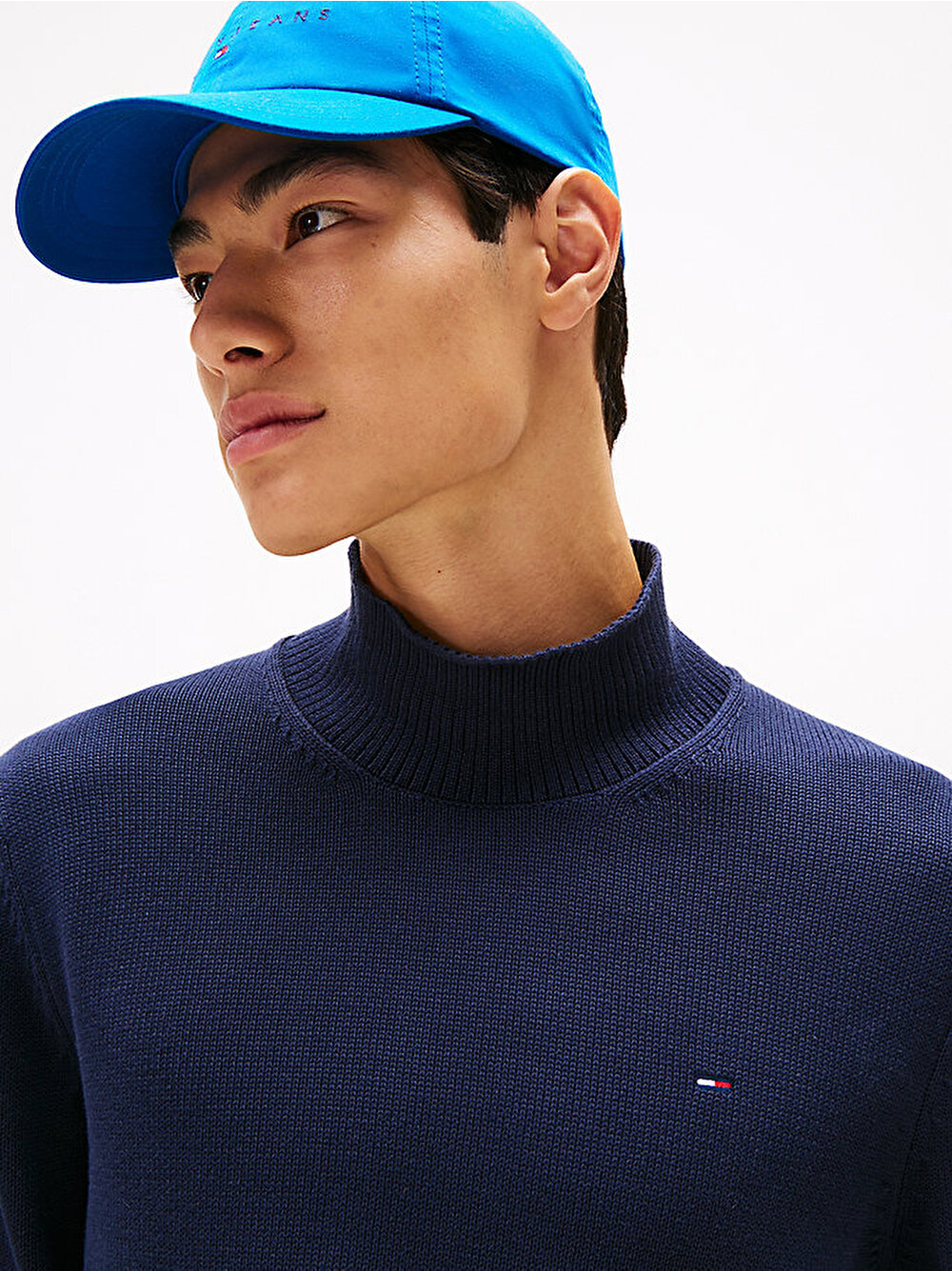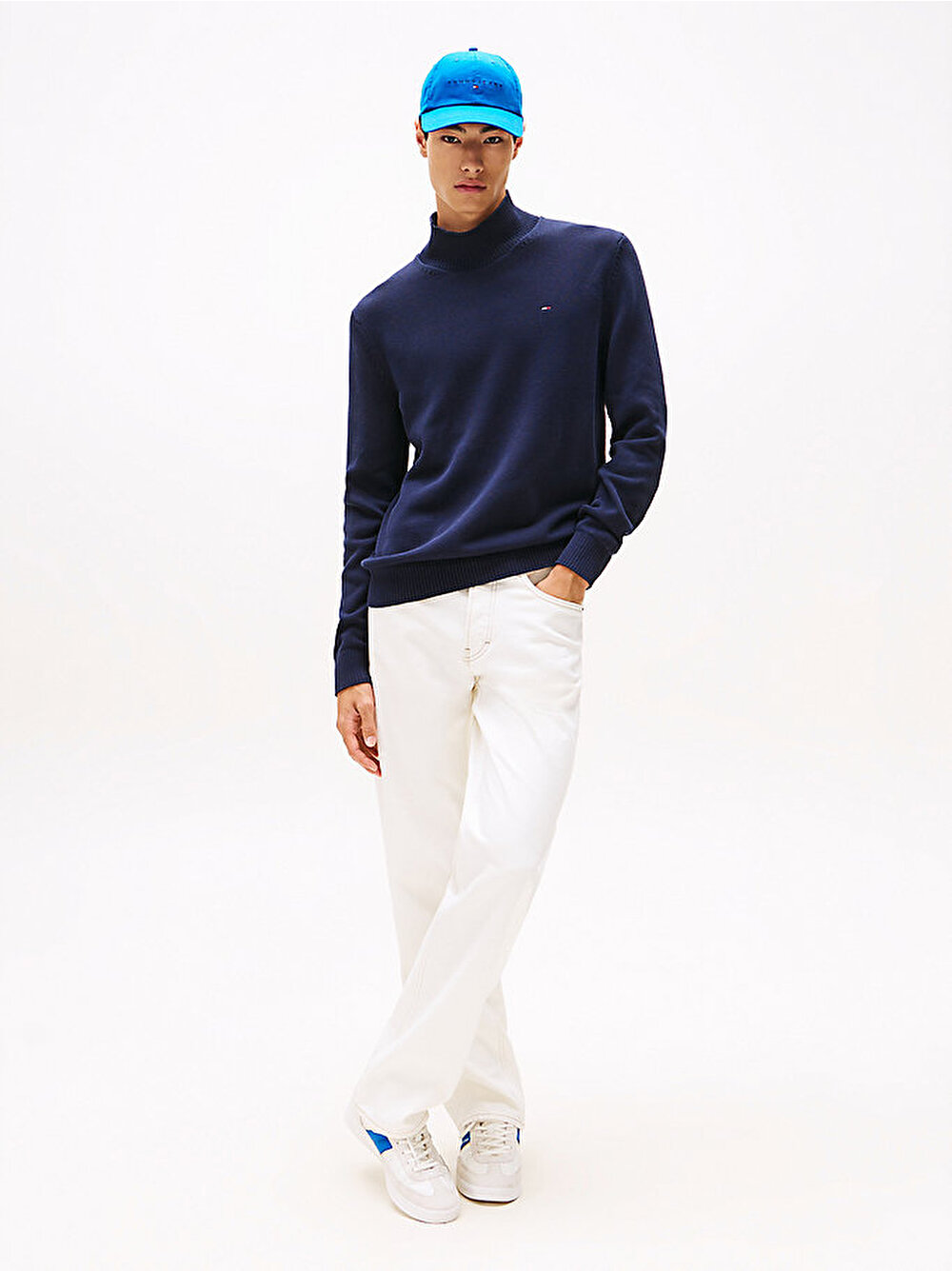 Slim fit kesimli ve yarım boğazlı yakaya sahip bu saf pamuklu kazak, günlük triko koleksiyonunuz için çağdaş bir parçadır.