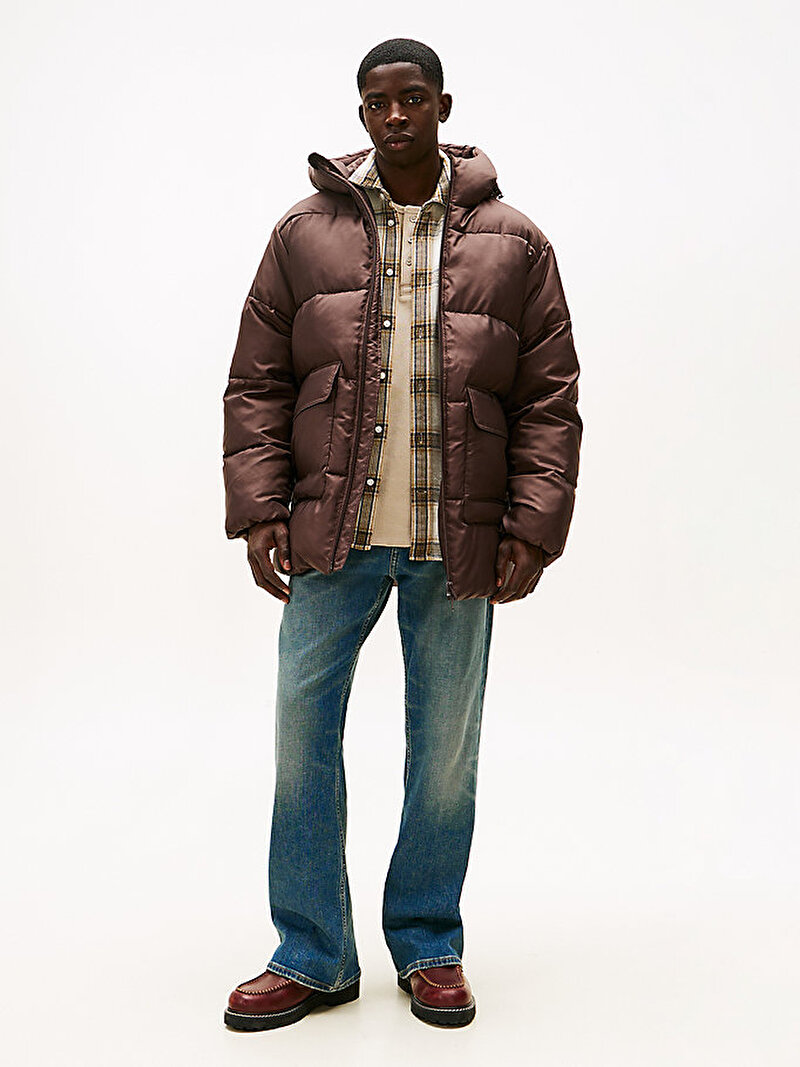 Bu hacimli şişme mont, rahat kesimi, sıkı kapüşonlu yakası ve lastikli manşetleriyle üstün bir kentsel kış ısıtıcısıdır.