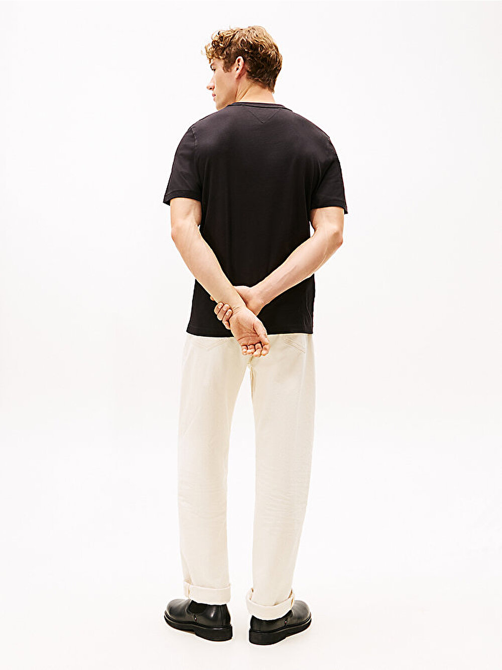 Düzgün bisiklet yakalı saf pamuklu jarse kumaştan bu T-shirt, cesur logo nakışıyla iddialı bir görünüm sunar.
