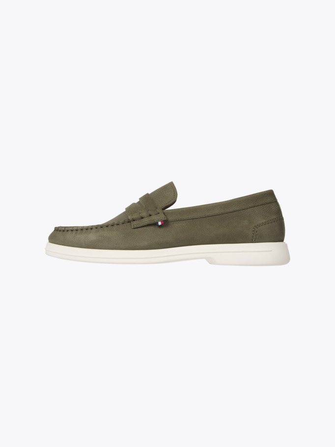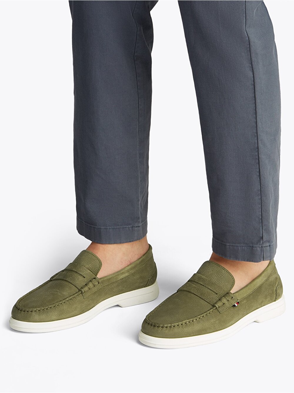 Dokulu nubuk deriden üretilen bu loafer ayakkabı, abartısız markalama detaylarıyla şık bir şekilde gündüz etkinliklerinden akşam toplantılarına geçiş yapmanızı sağlar.