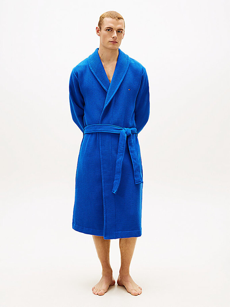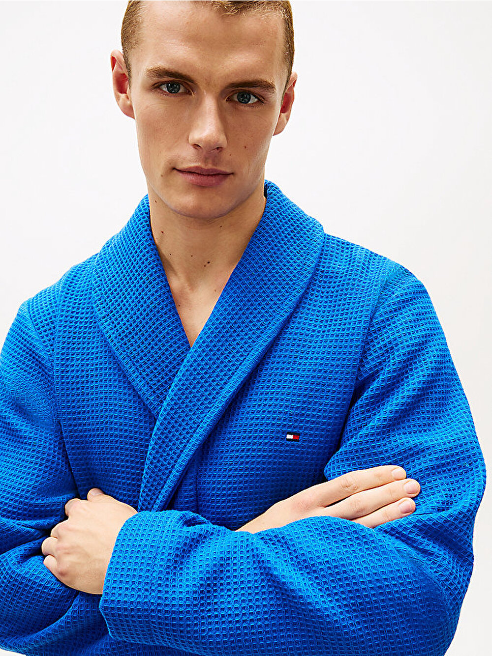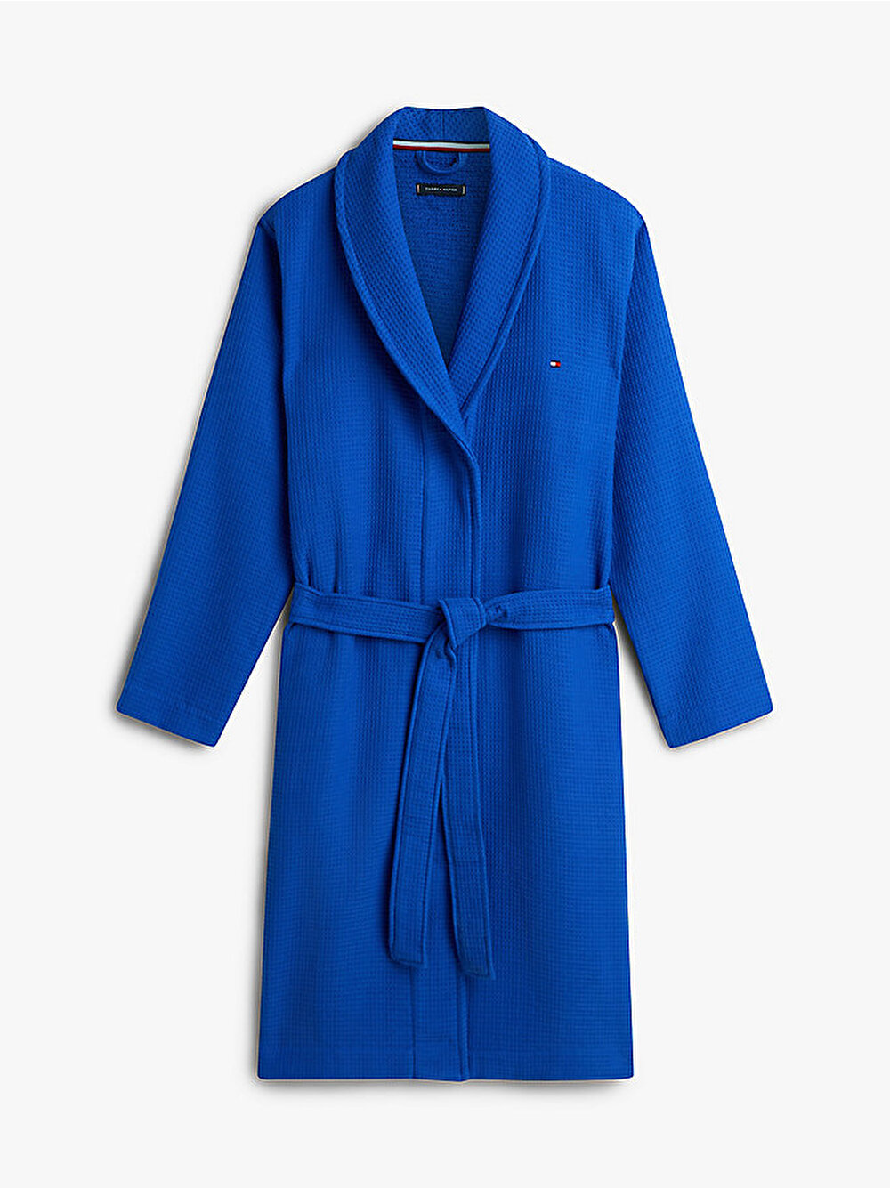 Bu waffle örgülü saf pamuk armürlü bornozun içine girin ve ister uzanırken, ister duştan yeni çıktığınızda yumuşacık rahatlığın tadını çıkarın.