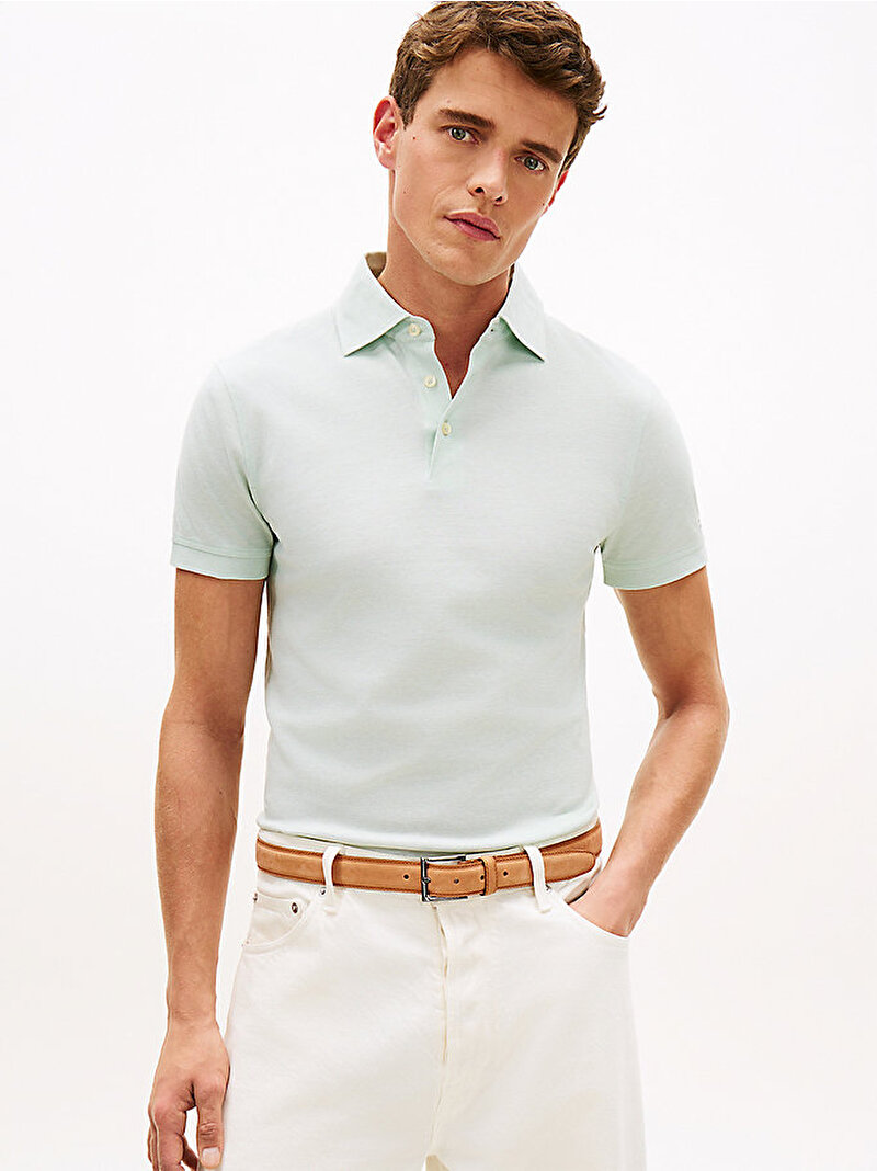 Yumuşak malzemeleri nötr renkler, kolay kapamalar ve net çizgilerle birleştiren Smart Casual koleksiyonu, profesyonel günler ve resmi olmayan geceler için özel olarak tasarlandı.Bu slim fit polo gömleğin geniş yakası rahat bir görünüm sağlarken, saf merserize pamuklu pike kumaş uzun ömürlü kullanım sağlar.