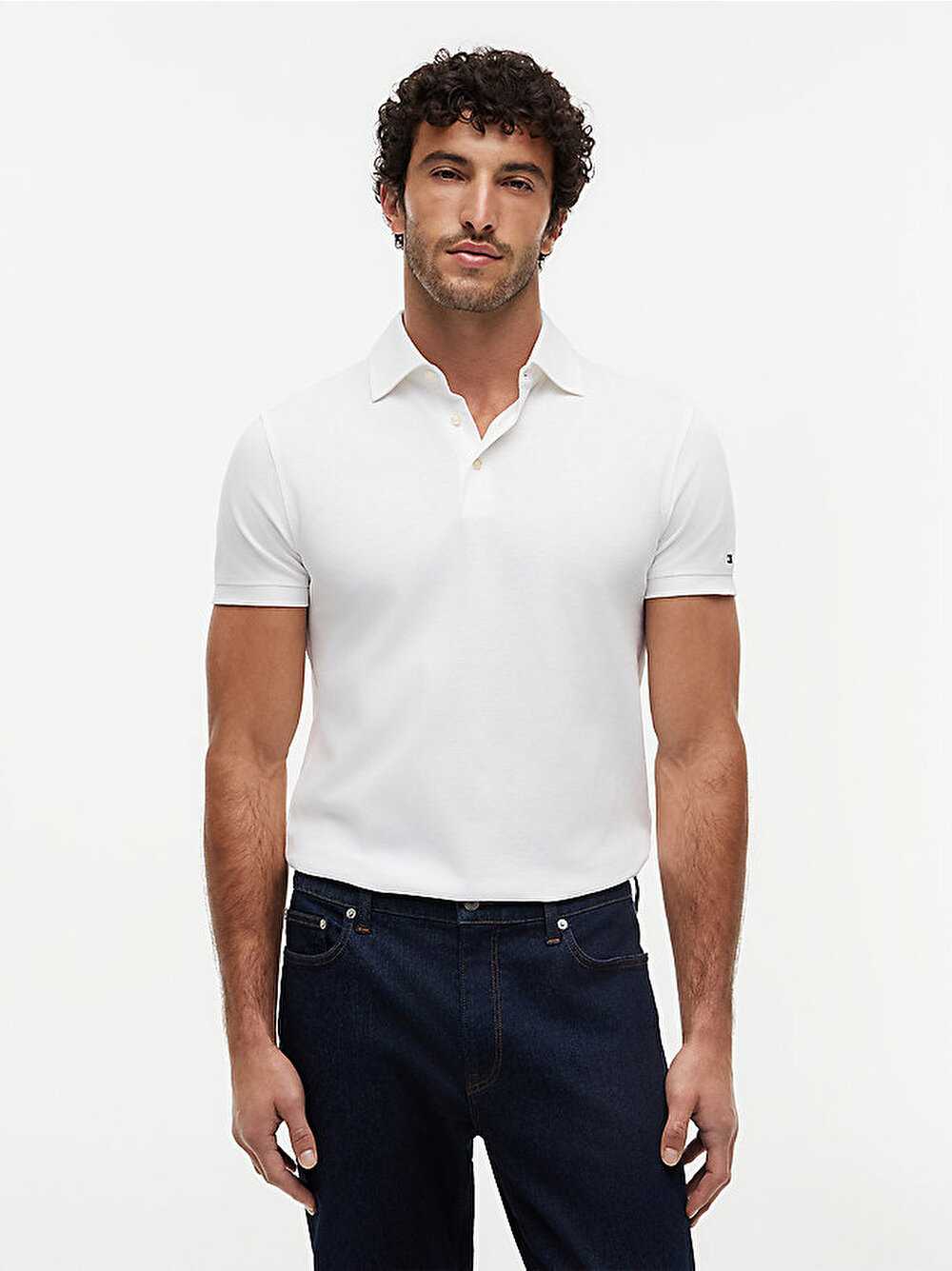 Yumuşak malzemeleri nötr renkler, kolay kapamalar ve net çizgilerle birleştiren Smart Casual koleksiyonu, profesyonel günler ve resmi olmayan geceler için özel olarak tasarlandı.Bu slim fit polo gömleğin geniş yakası rahat bir görünüm sağlarken, saf merserize pamuklu pike kumaş uzun ömürlü kullanım sağlar.