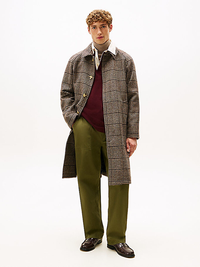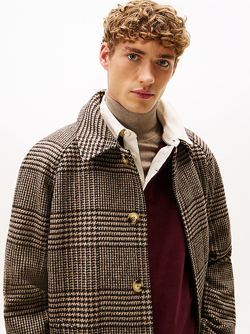 Bu dikkat çeken rahat kesim kaban, kaliteli yün karışımı kumaşı ve zamansız kareli deseniyle smart kombinlerinize zarafet katıyor.