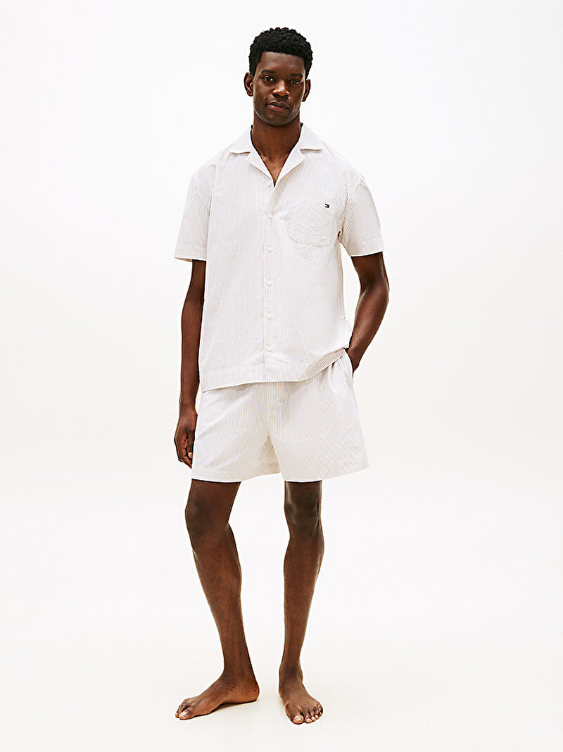 - Sıcak gecelerde maksimum hava akışı ve konfor sunan bu şık pijama gömlek-şort seti, Oxford pamuktan üretilmiştir.