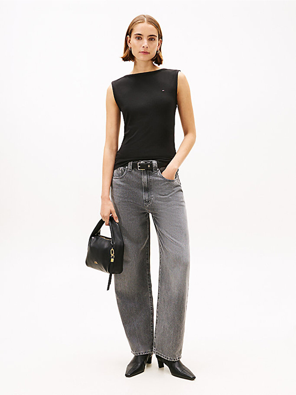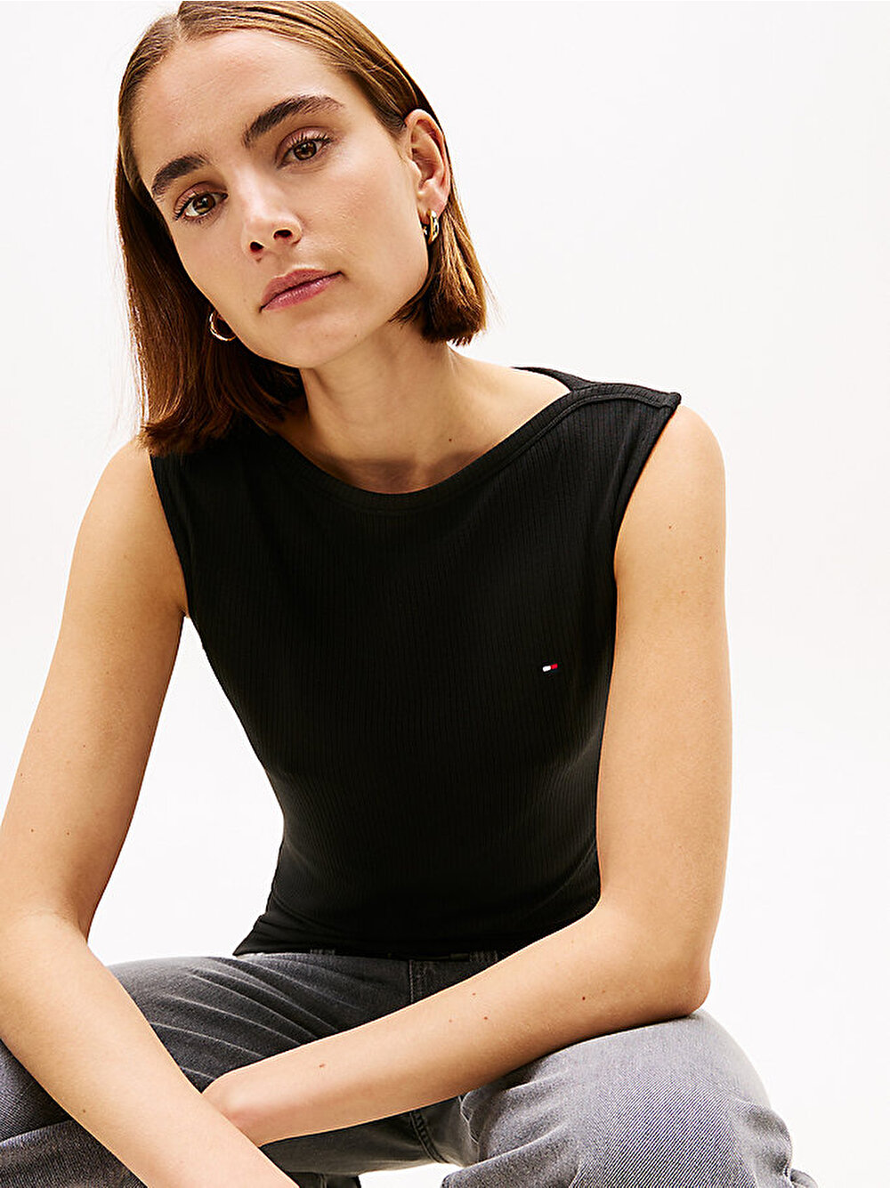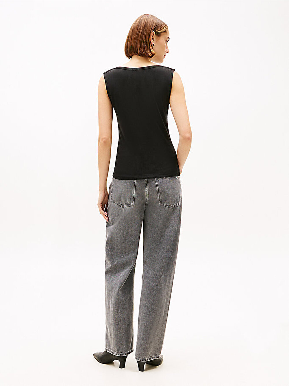 - Vücut hattını zarifçe gösteren kayık yakası ve slim fit kesimiyle bu ribana askılı üst, günlük katmanlı giyimin sofistike bir yorumudur.