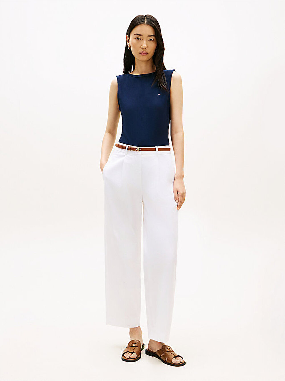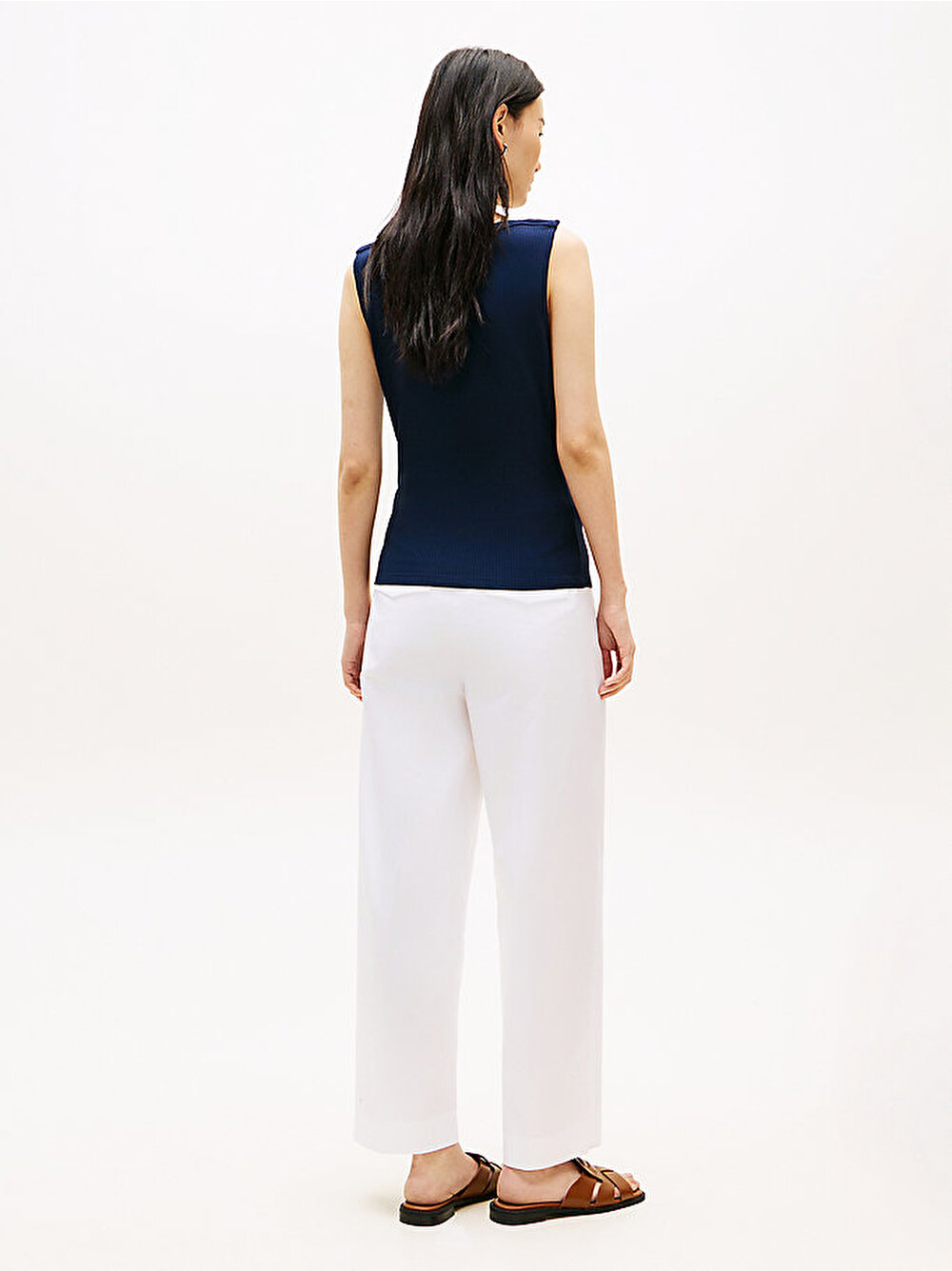 - Vücut hattını zarifçe gösteren kayık yakası ve slim fit kesimiyle bu ribana askılı üst, günlük katmanlı giyimin sofistike bir yorumudur.
