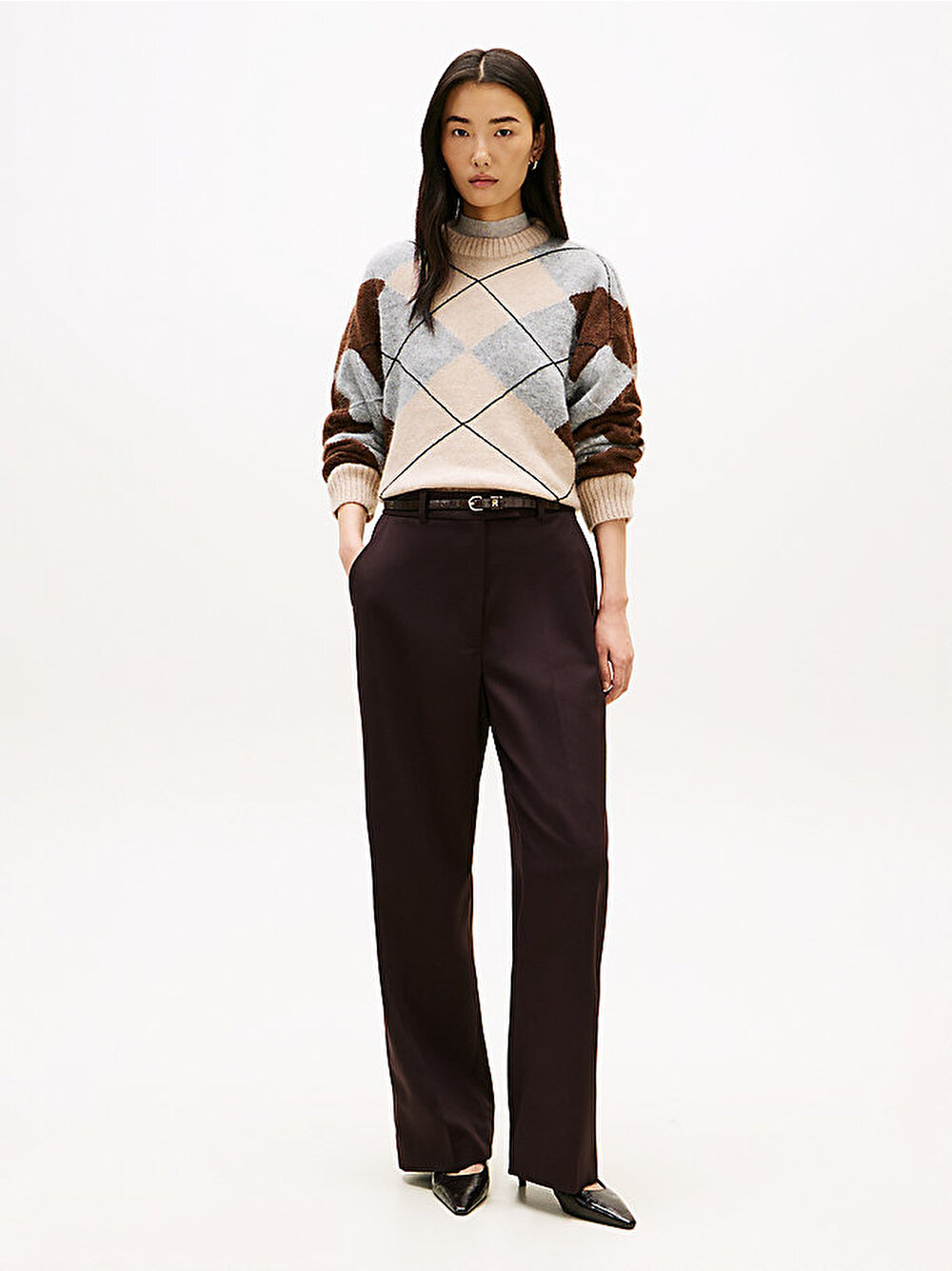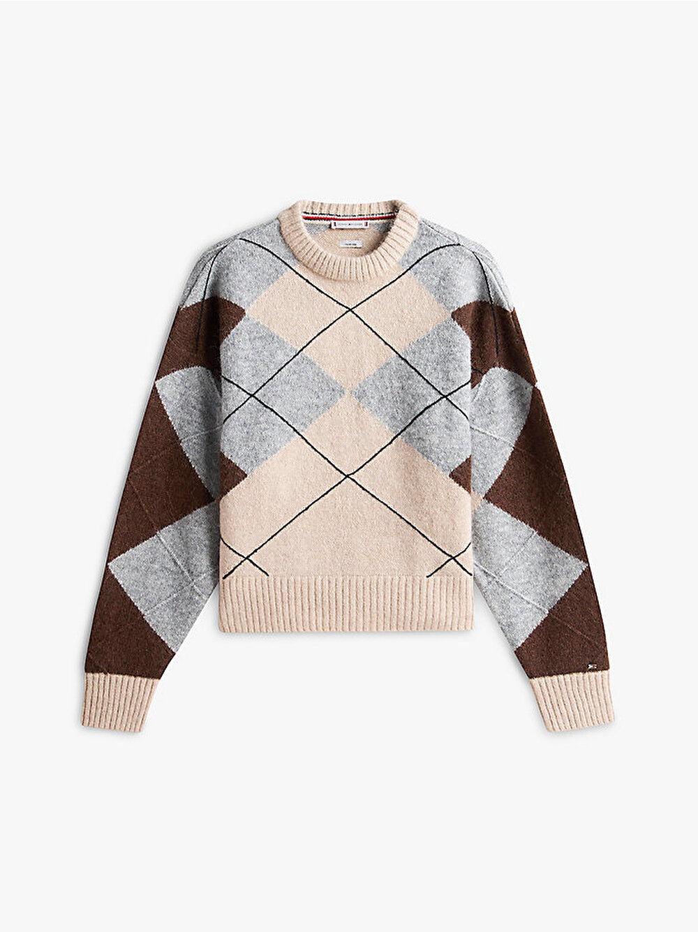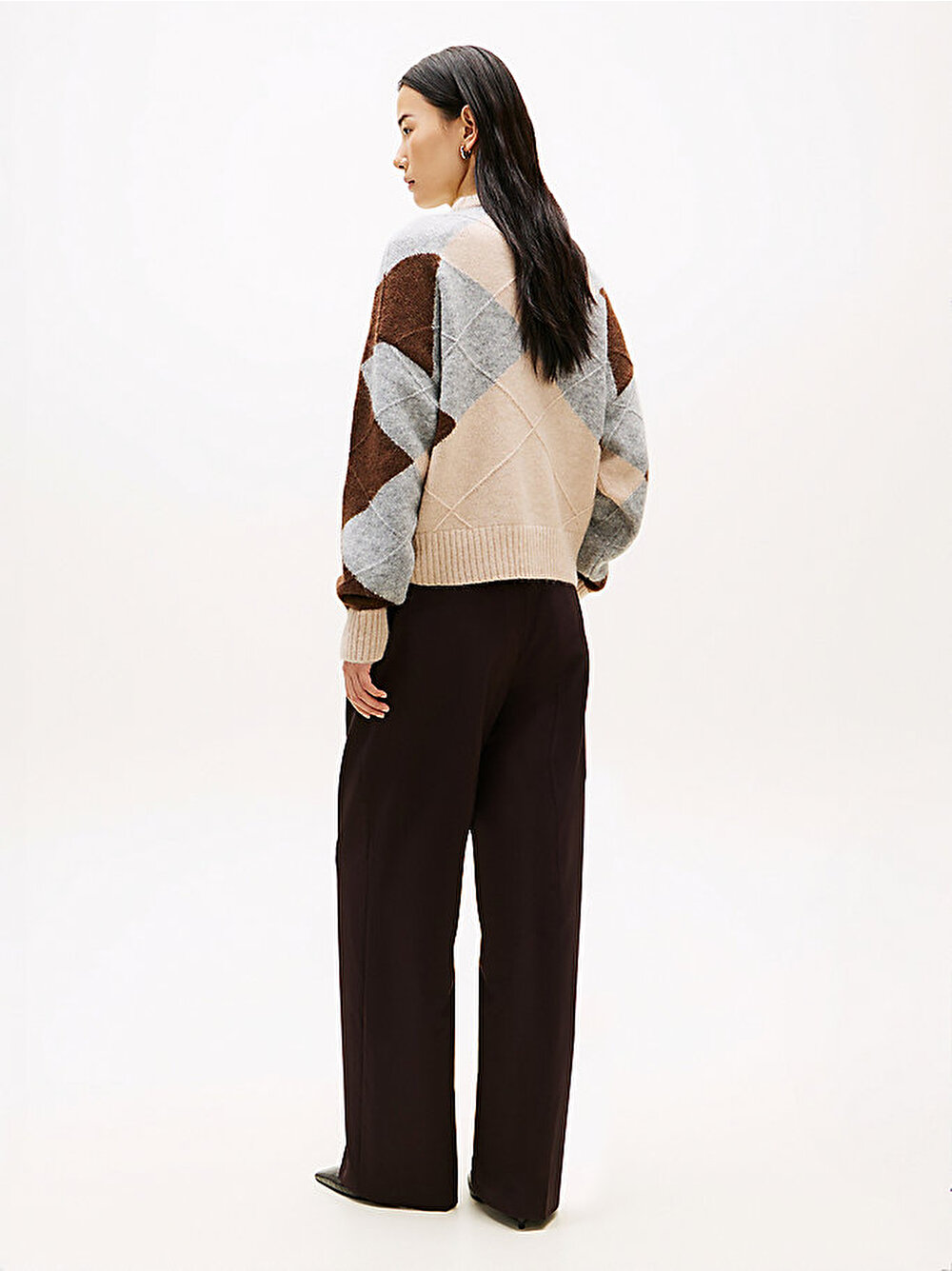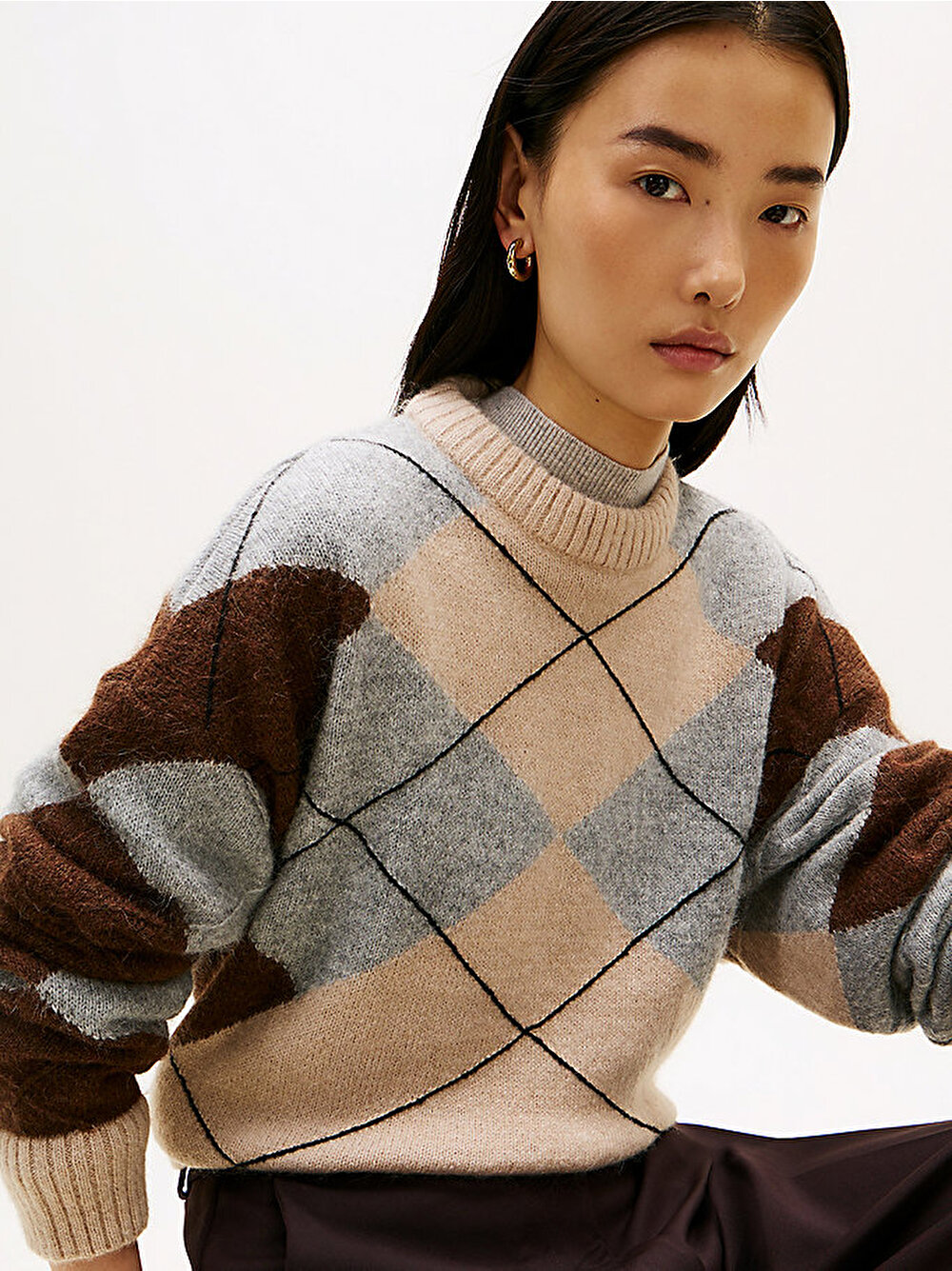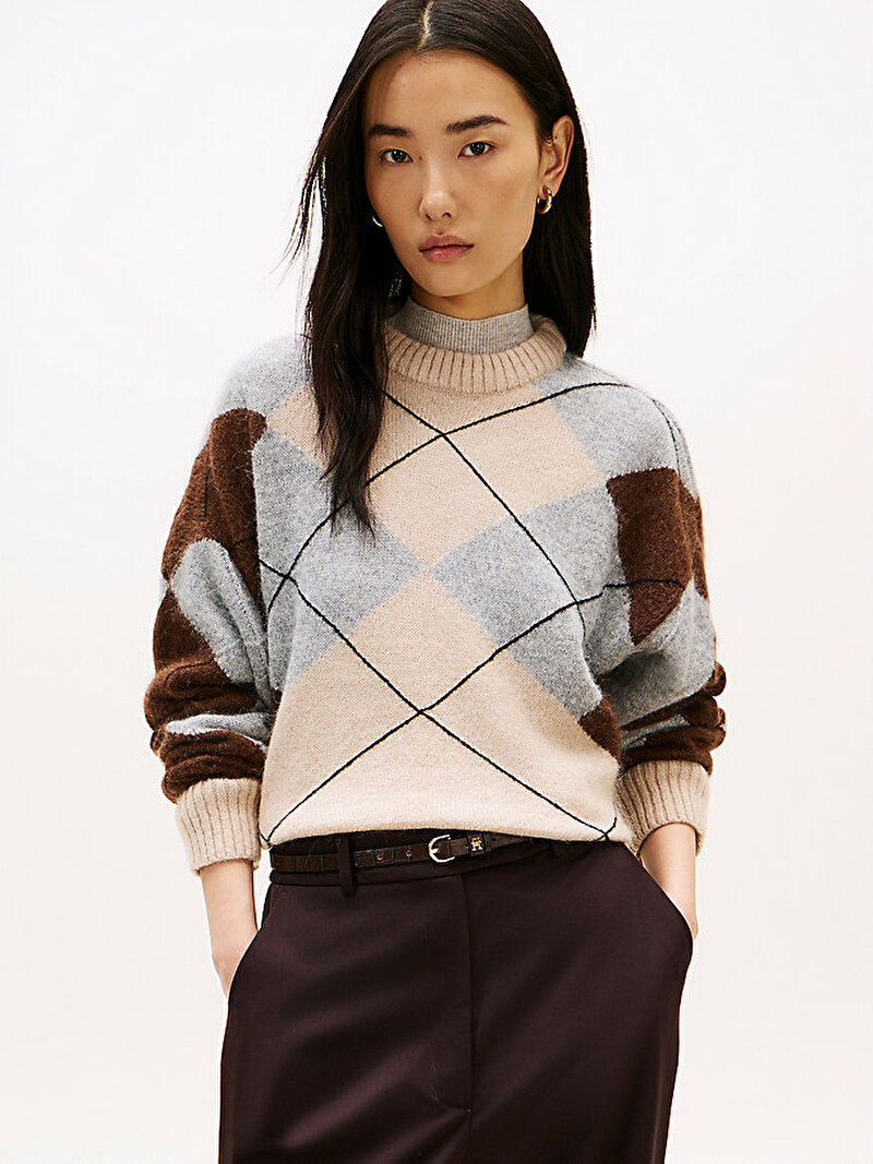 Lüks alpaka karışımlı iplikten üretilmiş bu konforlu oversize kazak, klasik baklava deseniyle zamansız bir zerafet sunuyor.
