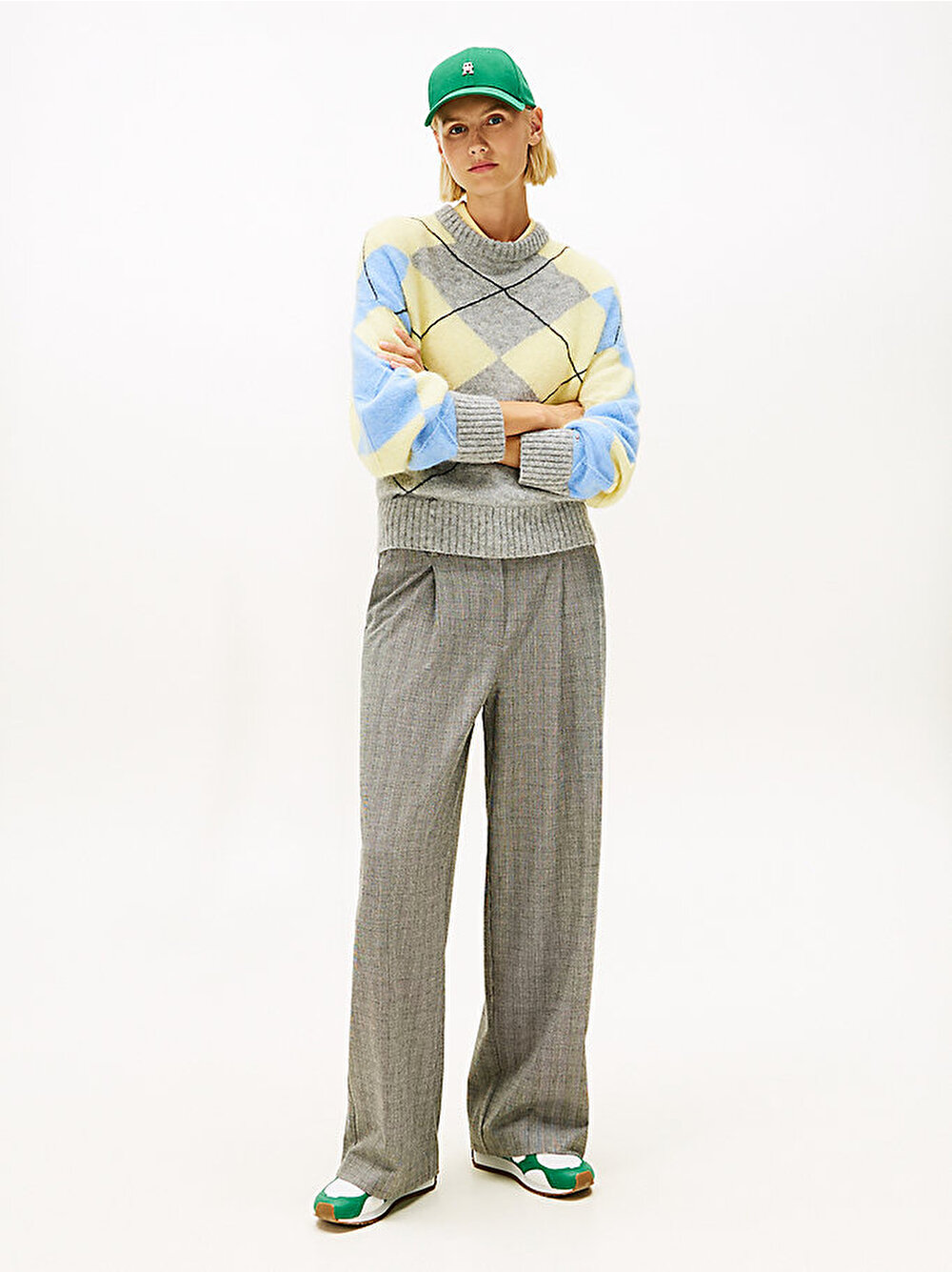 Lüks alpaka karışımlı iplikten üretilmiş bu konforlu oversize kazak, klasik baklava deseniyle zamansız bir zerafet sunuyor.
