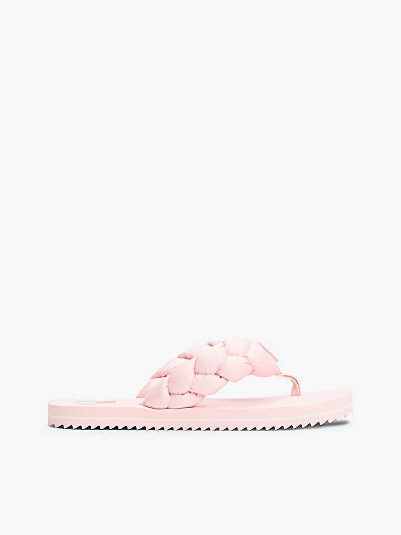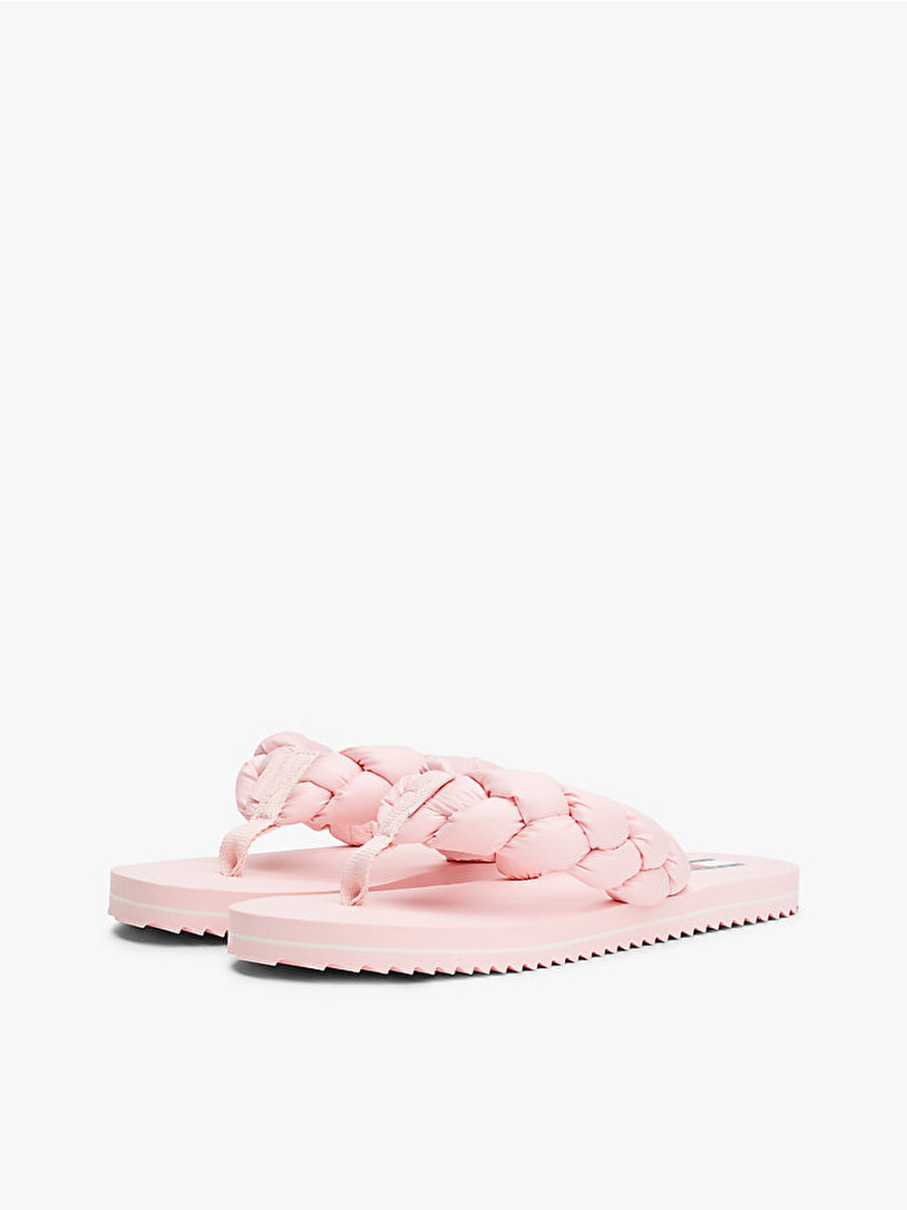 İmza detaylara sahip bu tırtıklı tabanlı parmak arası terlik, kalın dokuma kayışıyla ayağınızı rahatça sabitleyerek sahil için ideal bir seçenek sunar.