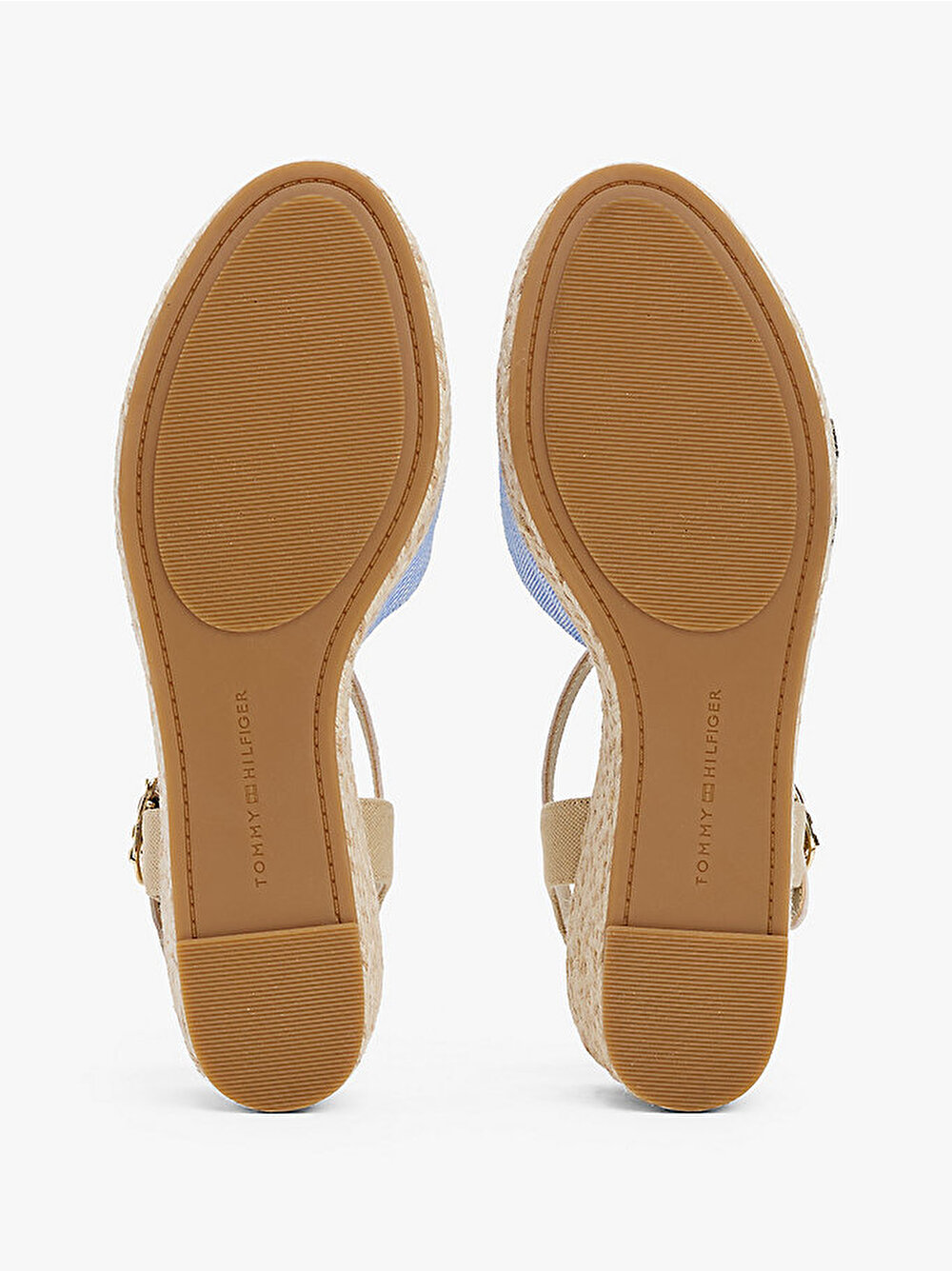 Bu dolgu topuk espadril, şamre pamuktan yapılan dokulu üst yüzeyi ve örgü halat kaplı topuklarıyla tatil esintili klasik bir görünüm sunuyor.