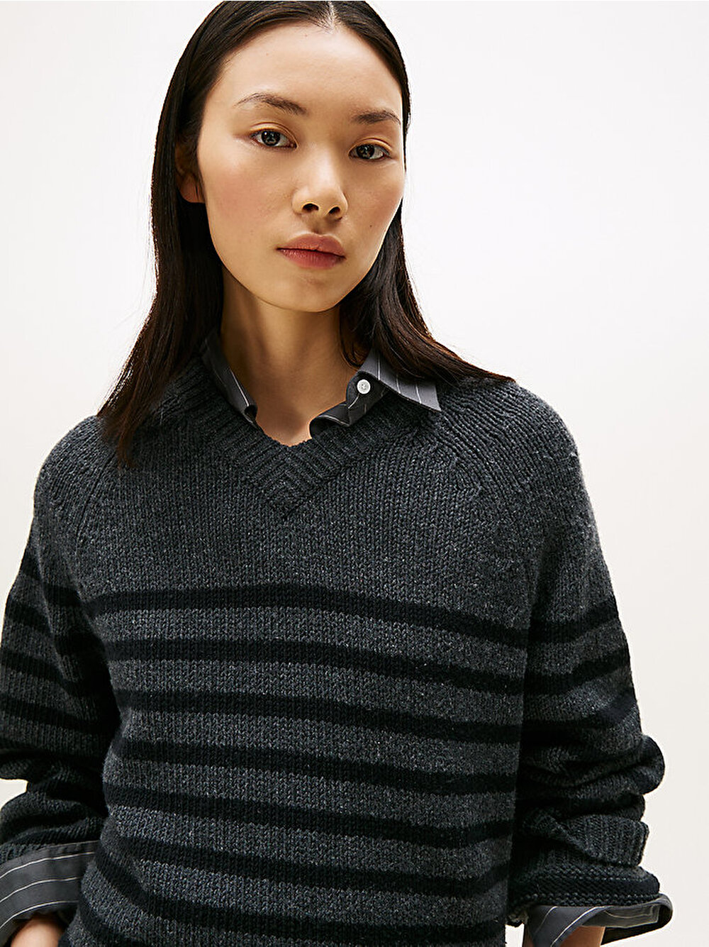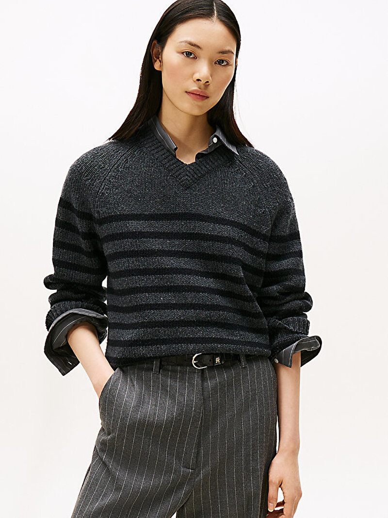 Kalın örgü tasarıma ve rahat bir siluete sahip bu lüks yün ve kaşmir karışımı kazakla sıcacık sarının.