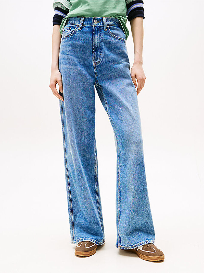 Bu jean pantolonun streç pamuklu deniminde ferahlatıcı Coolmax teknolojisi bulunurken, havadar geniş paçalar retro bir hava katıyor.