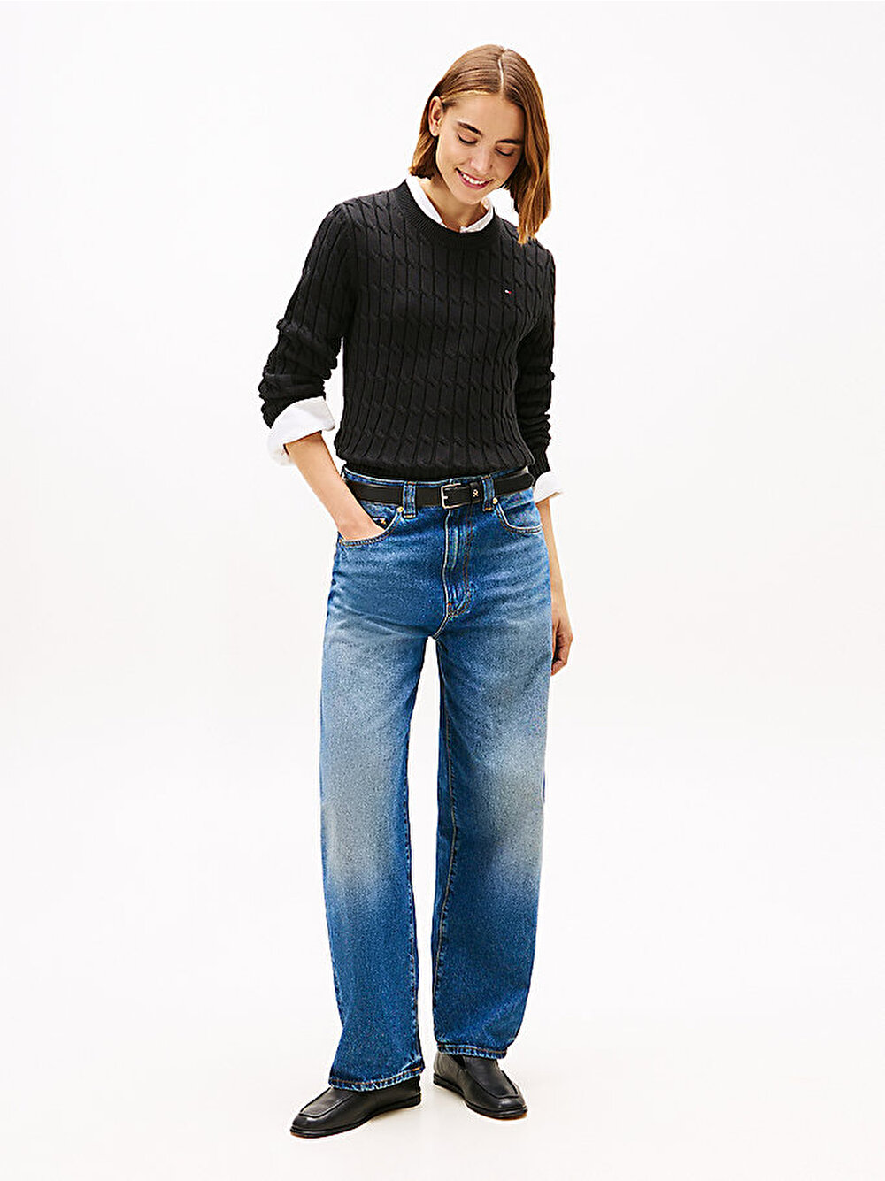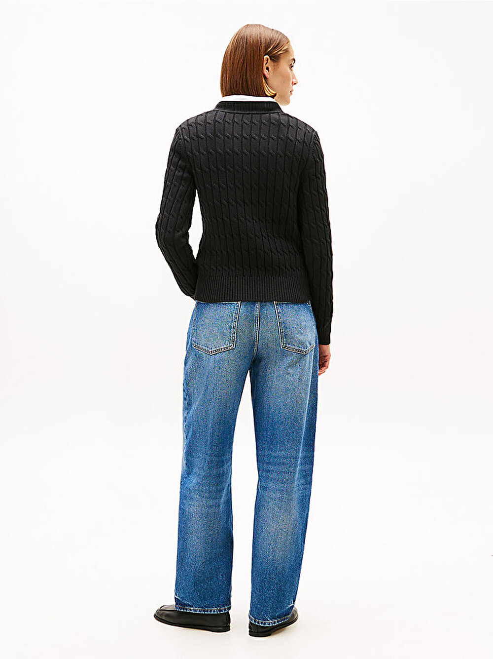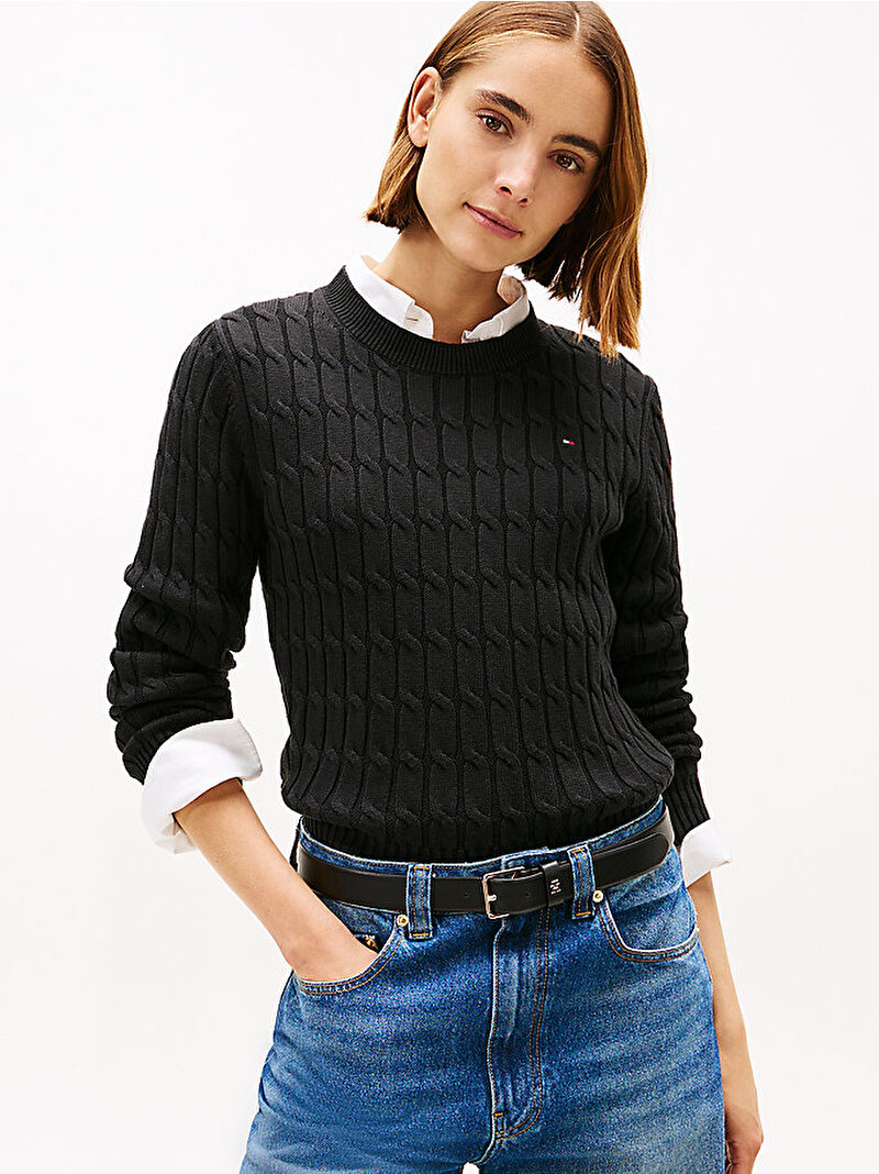 Saf penye pamuktan üretilen bu kazak, orta kalınlıkta kablo örgüsüyle şık ve konforlu bir katmanlama parçası sunuyor.
