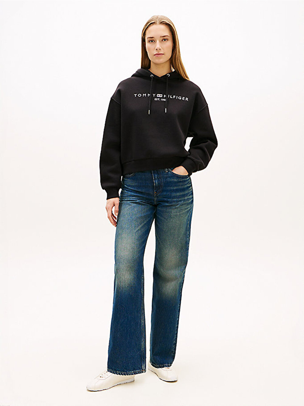 Havada bir soğuma olduğunda ve kendinizi rahatlatmak istediğinizde, bu rahat kesim, logo nakışlı kapüşonluyu giyin.