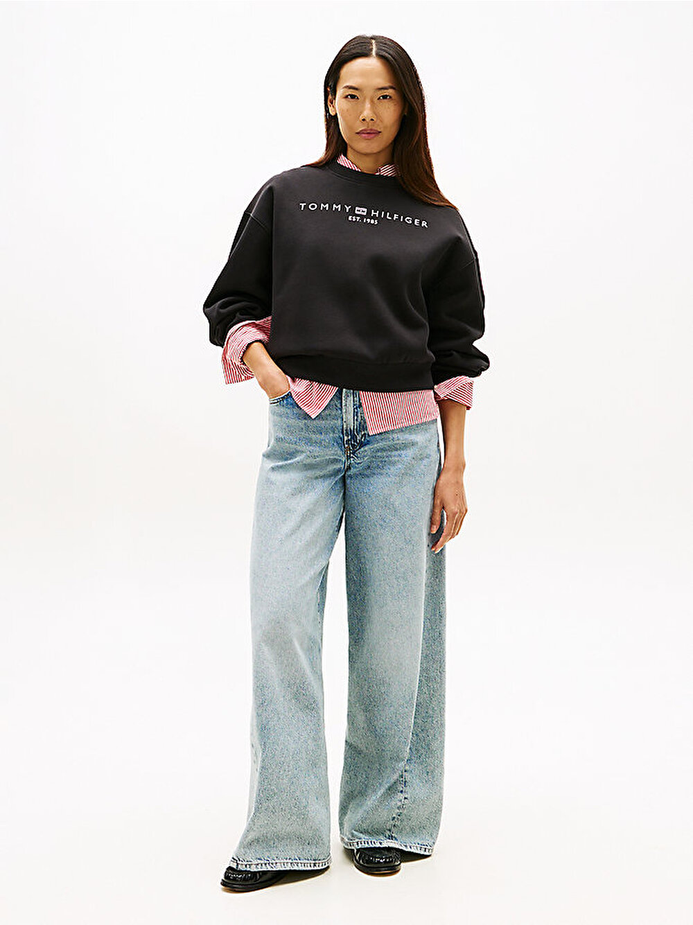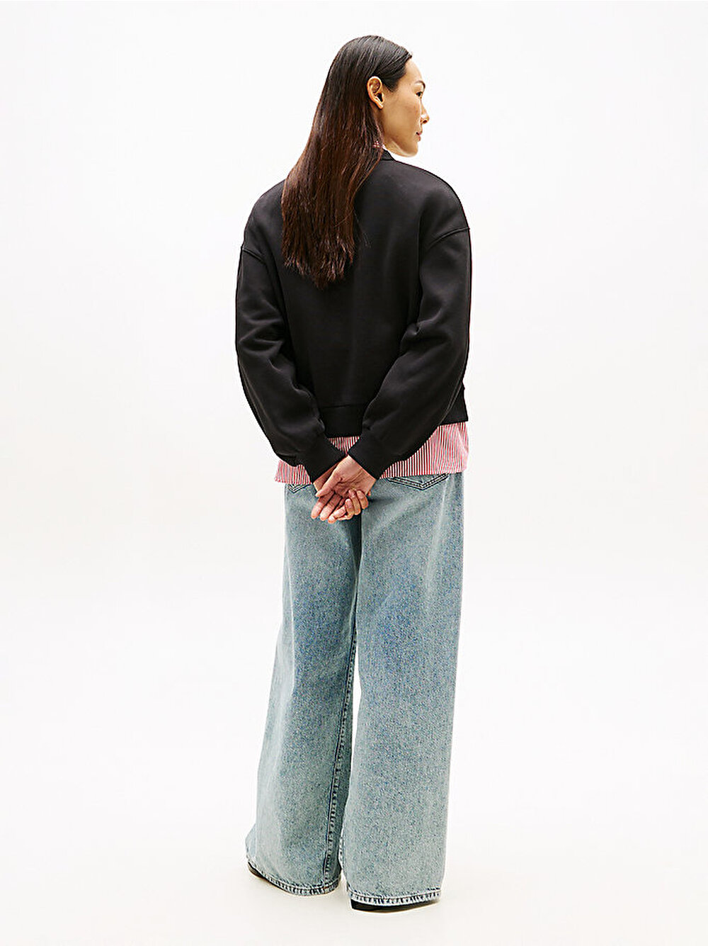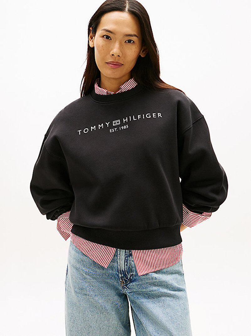 Bu rahat kesimli, pamuk karışımlı esnek polar kumaştan üretilmiş ve imza logosu bulunan bisiklet yaka sweatshirt ile kendinizi sıcacık hissedin.
