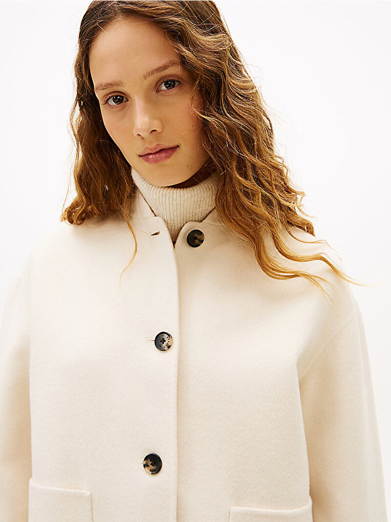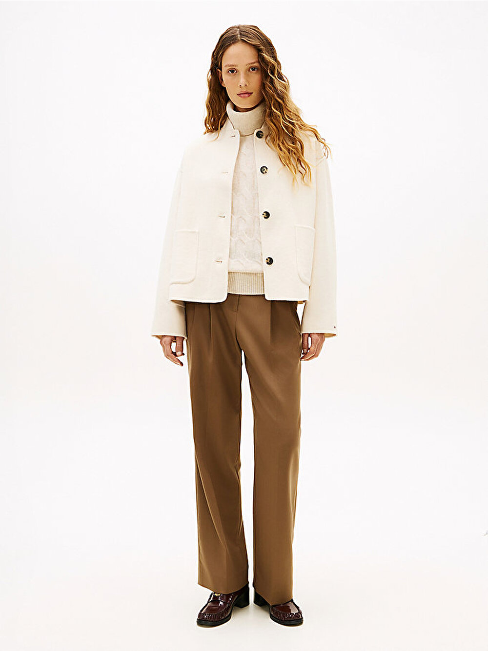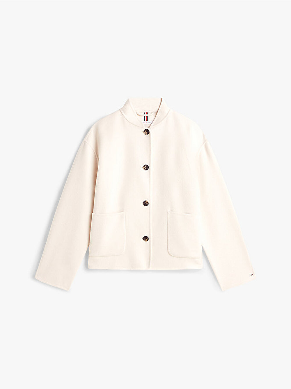 Klasik rahat stili yeniden yorumlayan bu bomber ceket, zarif kabartmalı sıcak yün karışımlı kumaşıyla yükseltilmiş bir duruş sergiler.
