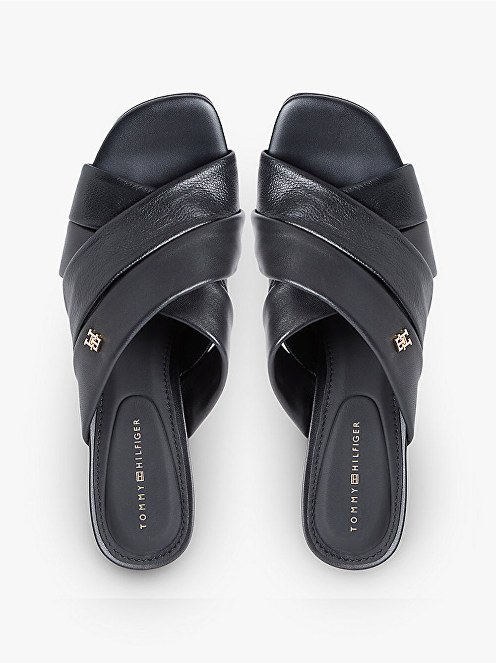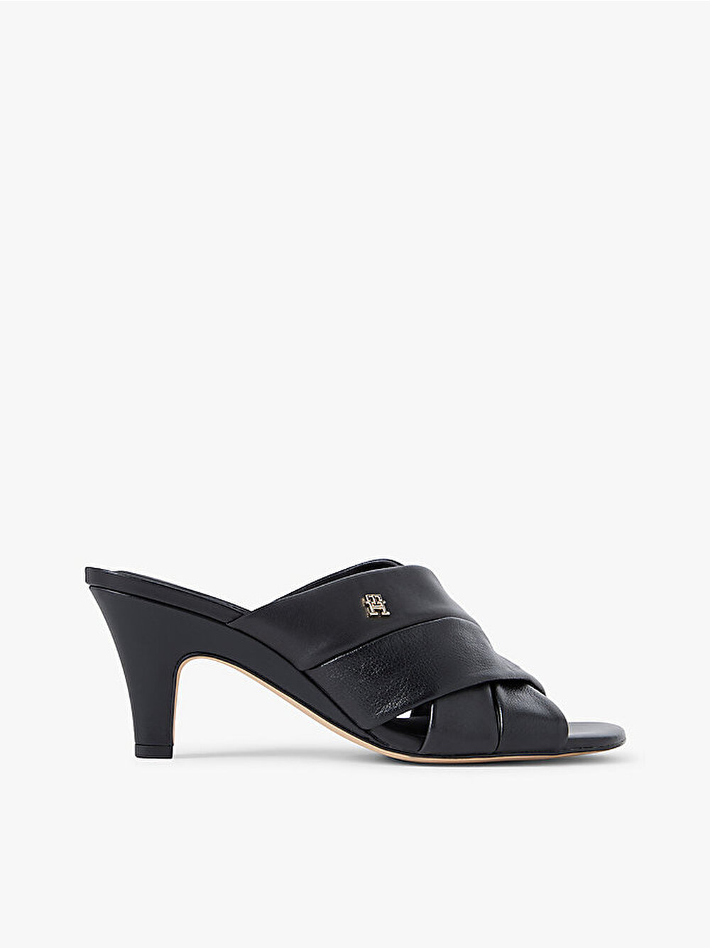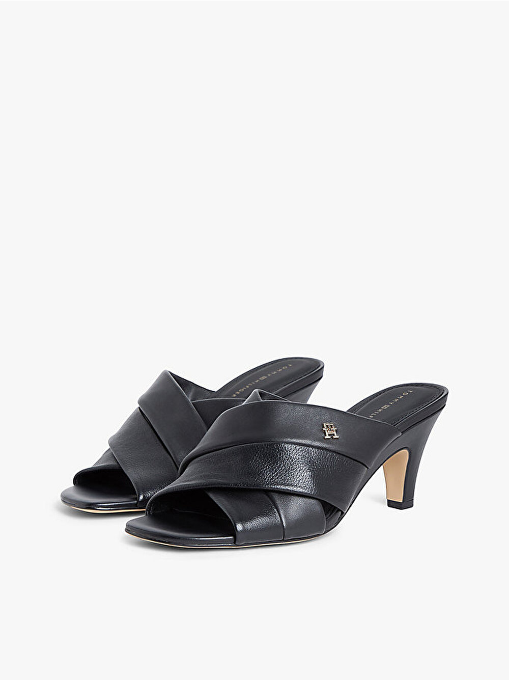 - Lüks deriden üretilen ve parlak TH monogram plaka aksesuarıyla tamamlanan bu topuklu mule terlikle gündüzden geceye zahmetsizce geçin.