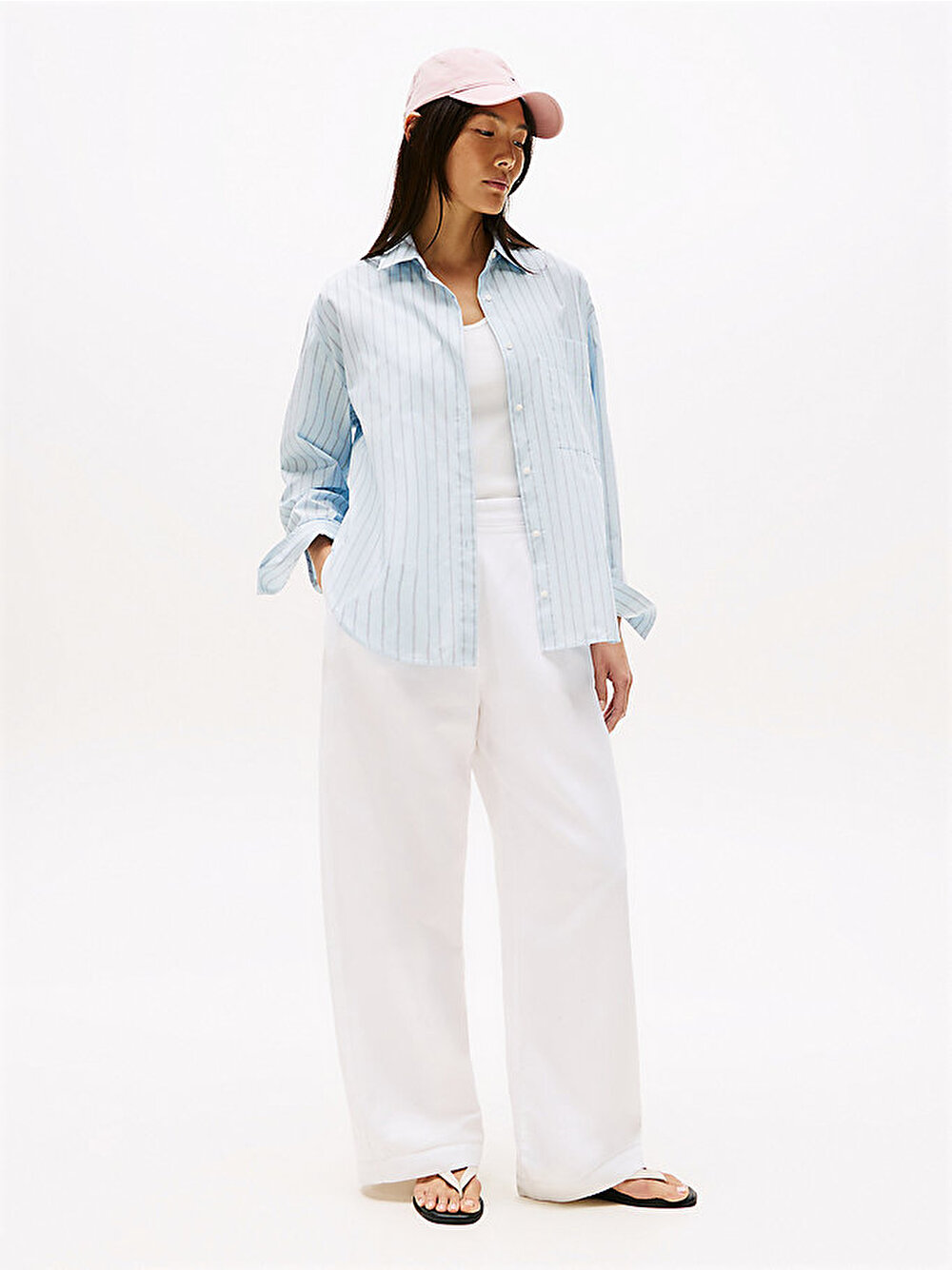 Bu oversize gömlek, ayarlanabilir manşetleri ile ister bol, ister vücuda oturan bir stil yaratmayı kolaylaştırır.