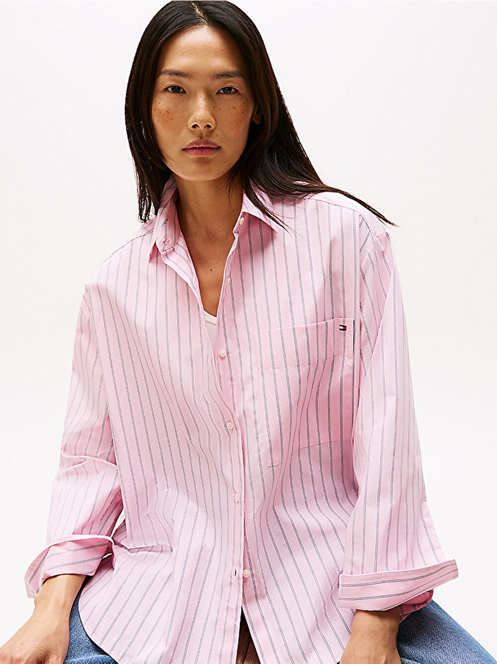 Bu oversize gömlek, ayarlanabilir manşetleri ile ister bol, ister vücuda oturan bir stil yaratmayı kolaylaştırır.
