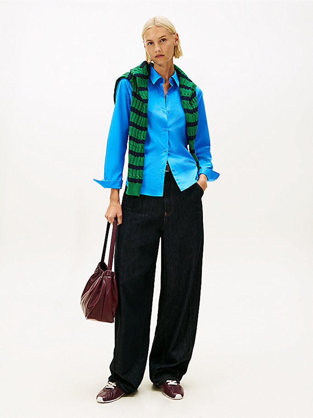Keskin çizgili streç pamuklu poplinden yapılmış bu zamansız gömlekle iş kıyafetlerinize terzi işi bir dokunuş katın.
