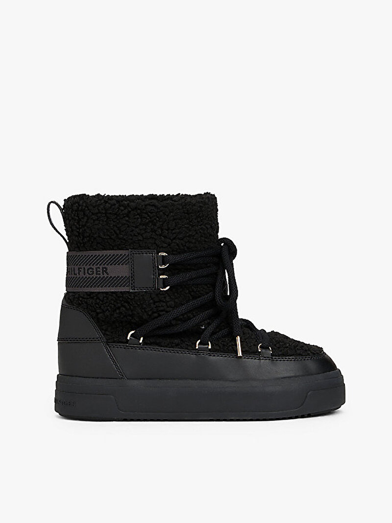 Suni kürk detayları, sağlam bağcıkları ve dayanıklı tabanlarıyla bu sıcak kar botu kış maceralarına hazır.