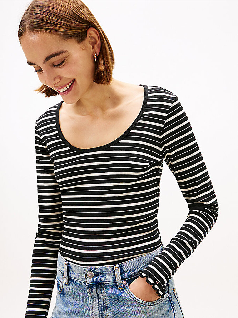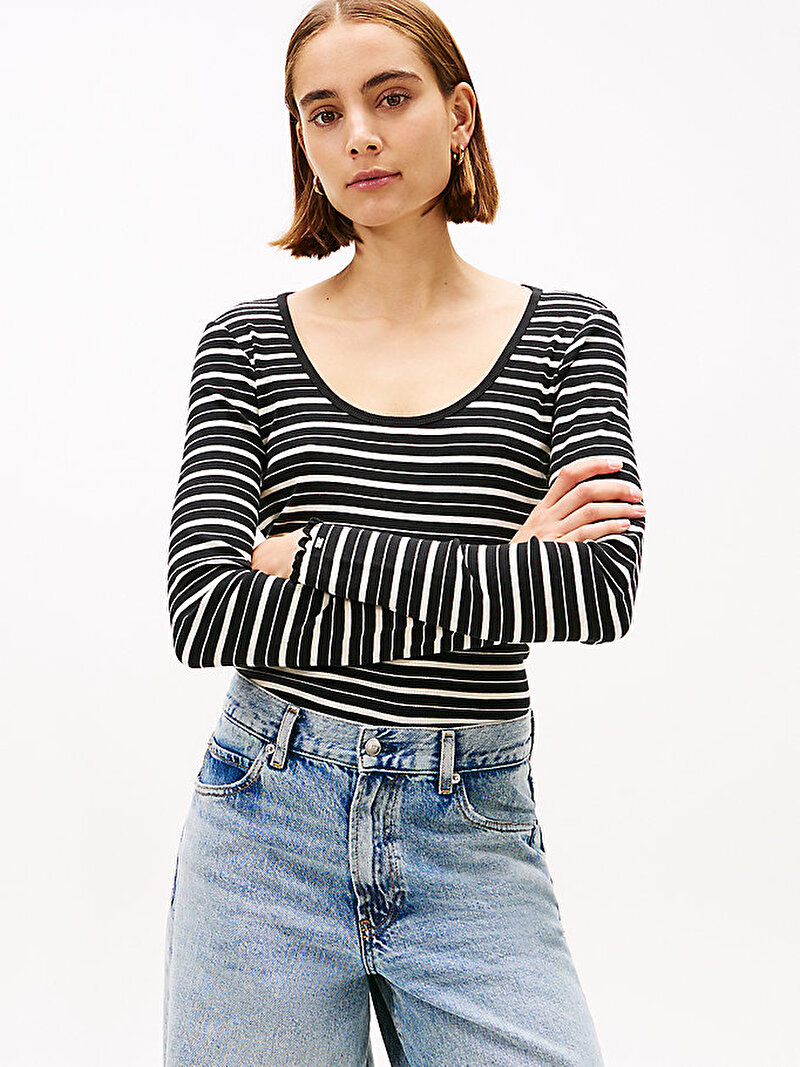 kadın fine rib scoop neck t-shirt