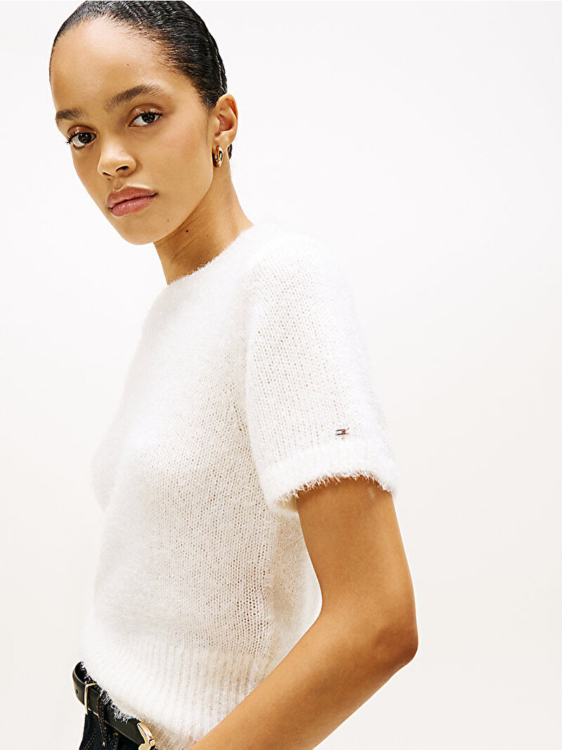 kadın fluffy c-neck petit kazak