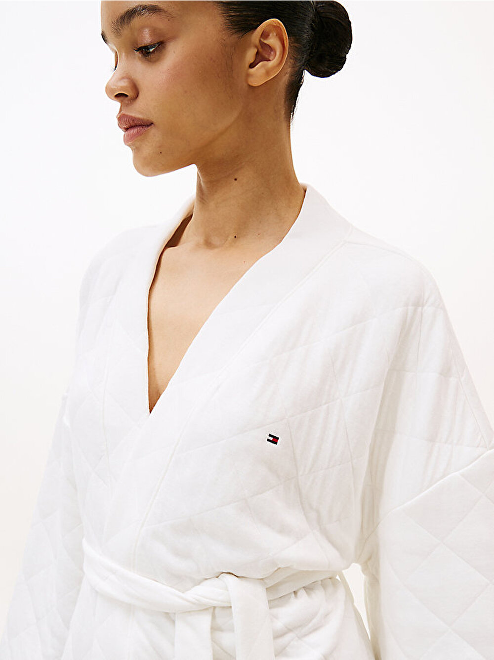 Serin sabah ve akşamlar için ekstra bir katman olarak kullanılabilen, kapitone dikiş ve marka detaylarıyla tamamlanan bu yumuşak jarse bornozu özel birine hediye edin.