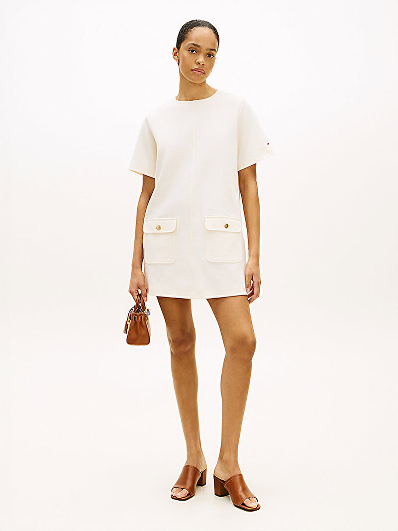 - Ağır gramajlı interlok örgüden üretilen ve lüks bir dokunuş sunan kabartmalı altın tonlu düğmelerle tamamlanan bu shift elbise, gündüzden geceye şıklık sunan kusursuz bir parçadır.