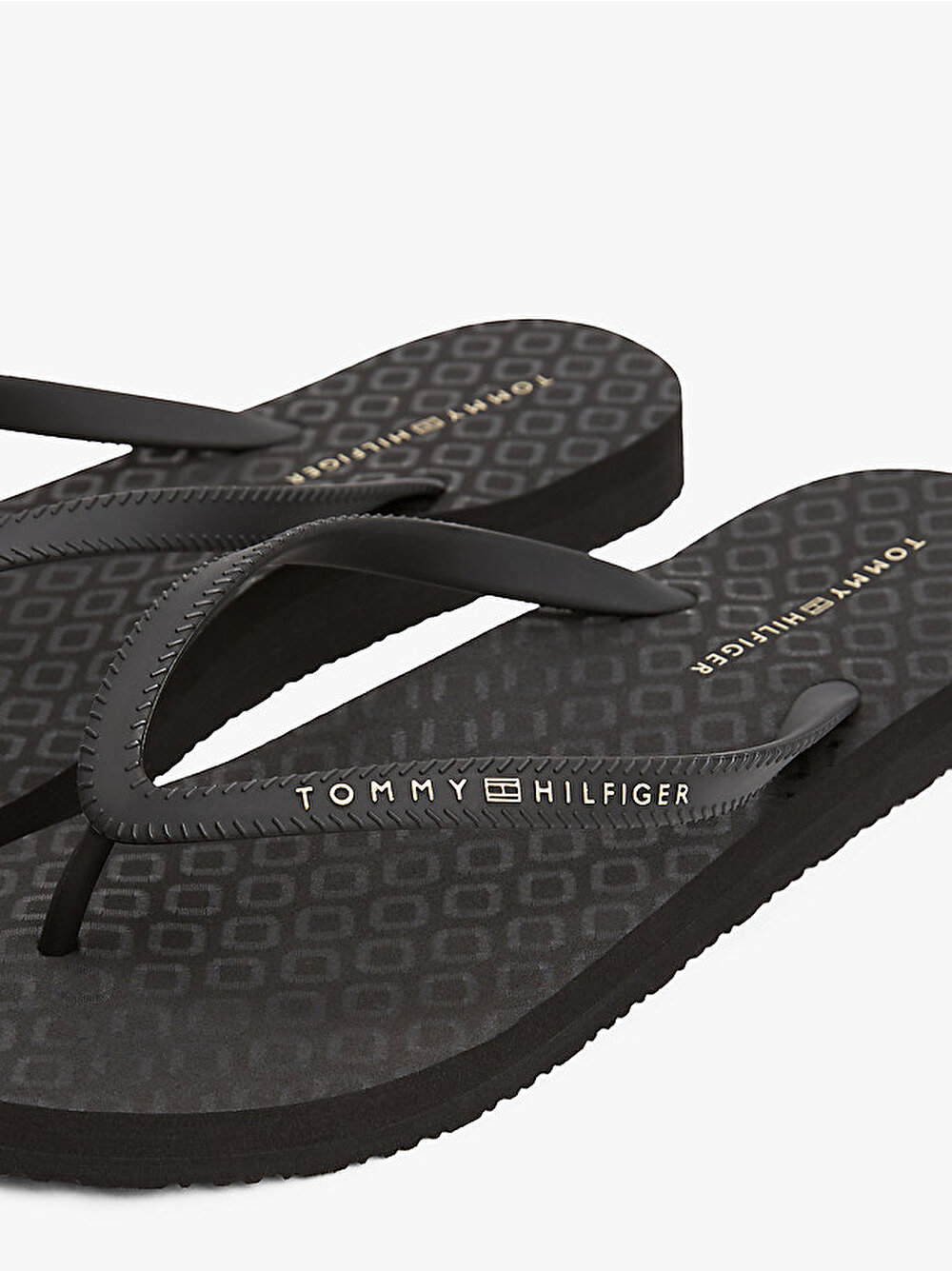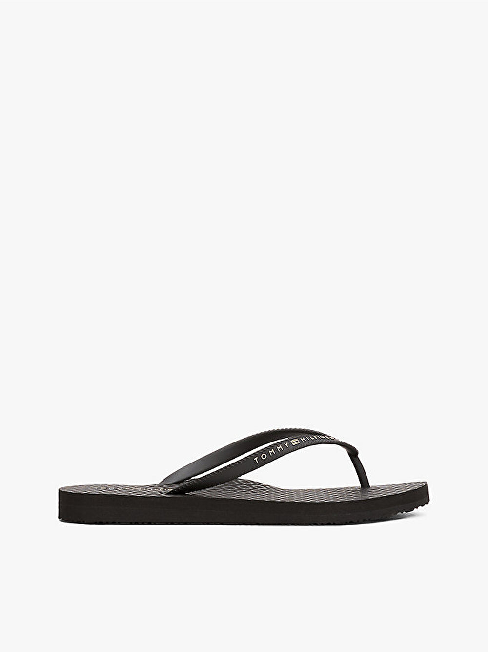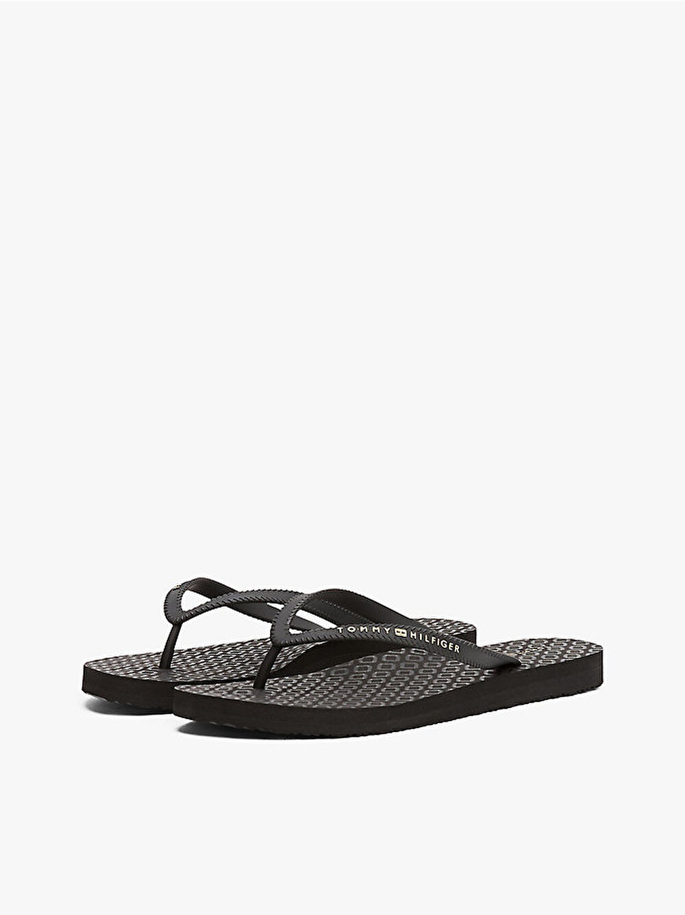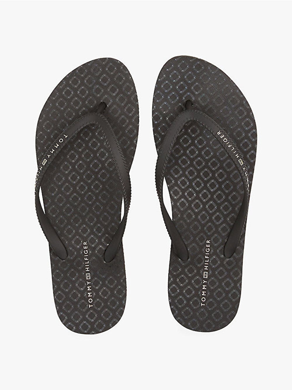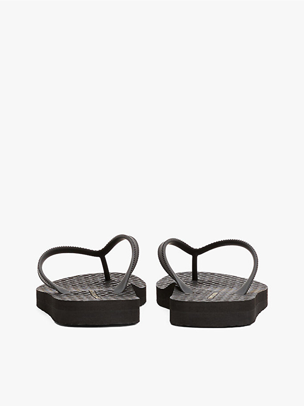 İnce kayışları ve dokulu logo detayıyla tamamlanan bu parmak arası terlikle plaj stilinize ışıltılı bir dokunuş katın