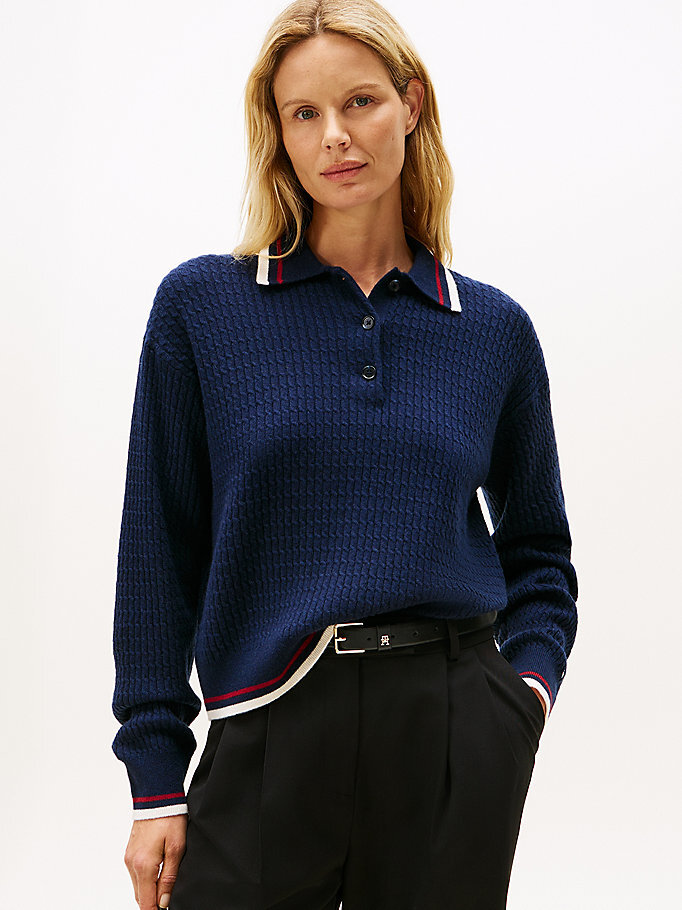 Tommy Hilfiger'ın giyim koleksiyonları, kadınların gardıroplarına şıklık ve konfor katan harika seçenekler sunar. Kadın örgü kazaklar, triko seçenekler, yünlüler, boğazlı seçenekler, büzgülü modeller, croplar ve çok daha fazlası koleksiyon içinde yer alır.