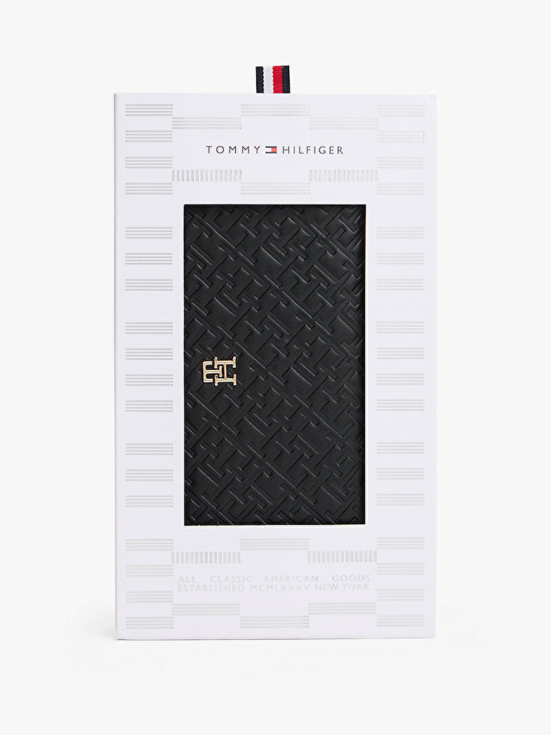Baştan aşağı kabartmalı TH monogramı ile dikkat çeken bu özel fermuarlı cüzdan, bozuk para, kart ve kağıt paralarınız için ekstra alan sunar.