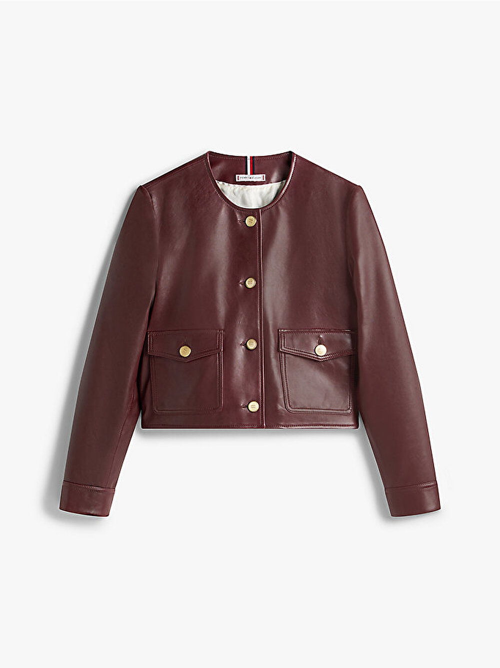 Yumuşak deriden üretilmiş, yakasız şık tasarımı ve su itici özelliğiyle bu ceket, mevsim geçişlerinde premium bir stil sunar.