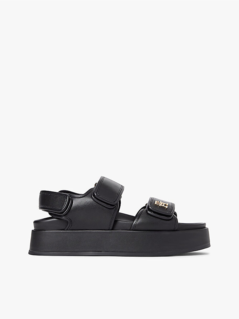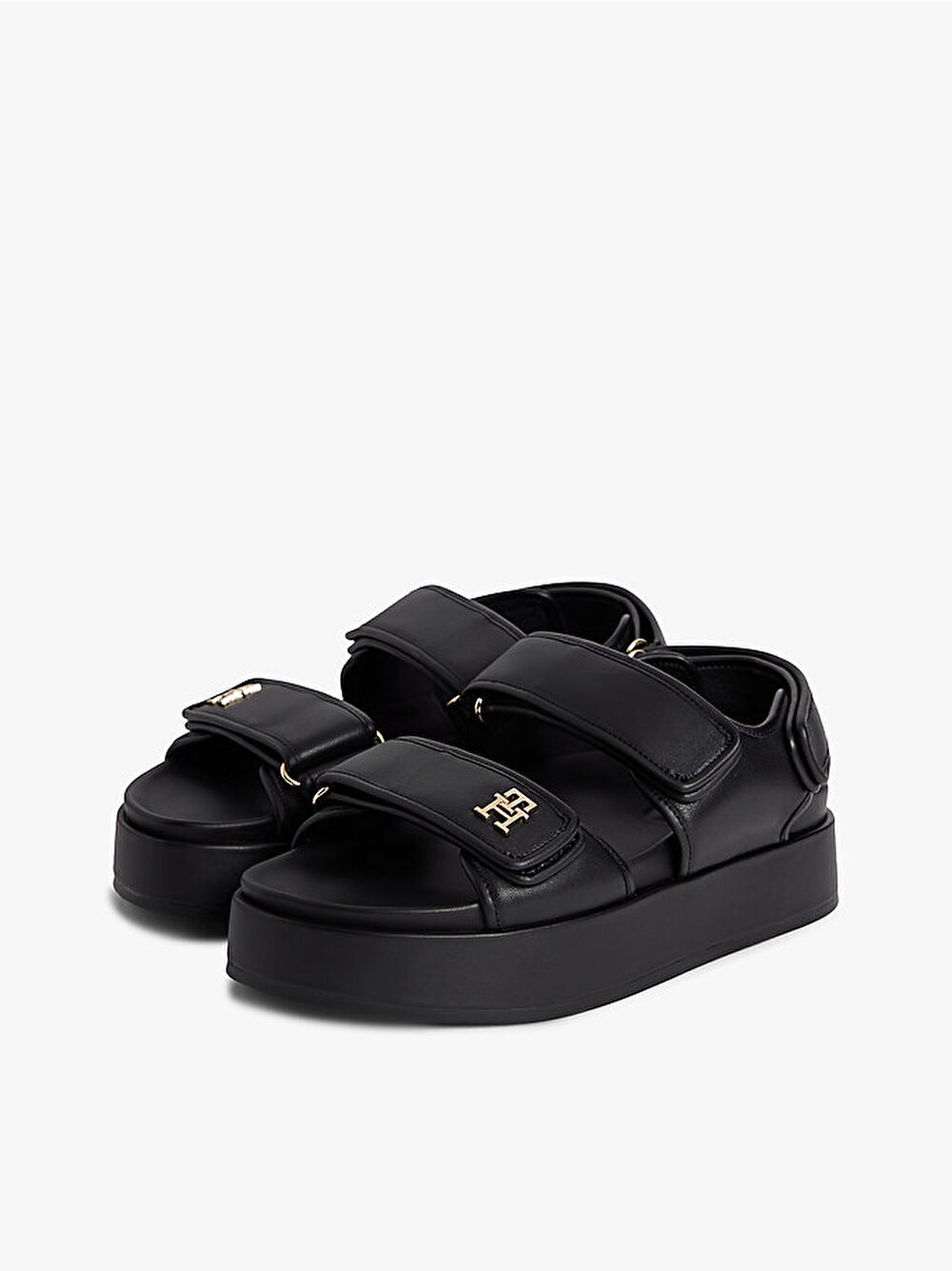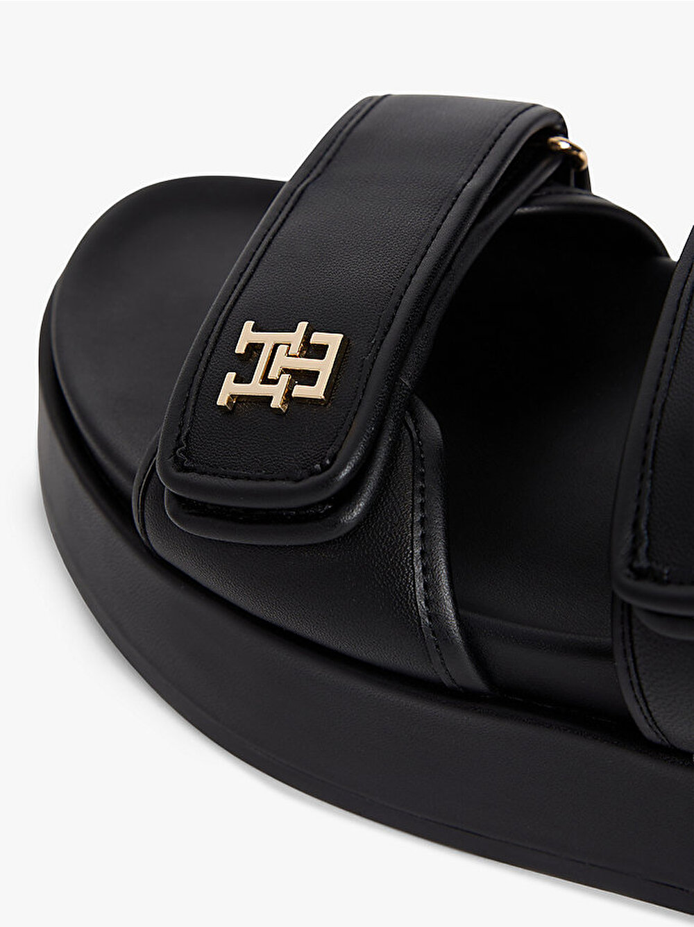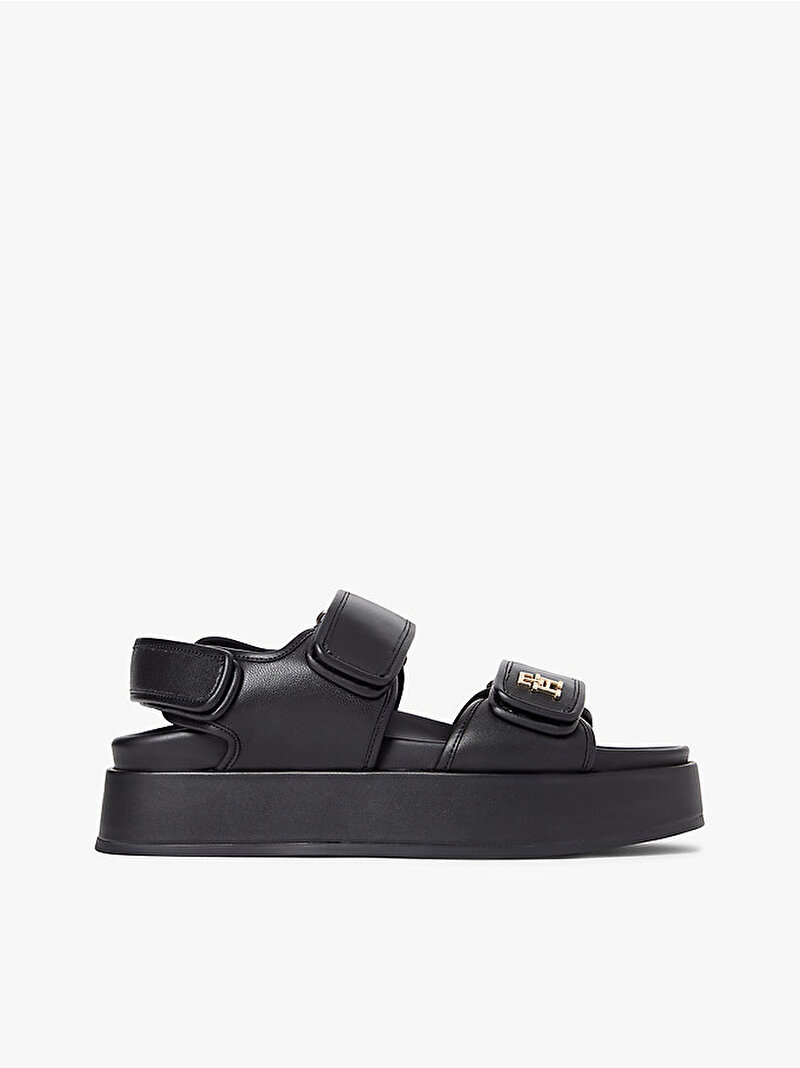 - Napa deriden üretilen bu platform sandaletin sportif silüeti, ön kayıştaki parlak TH monogram detayıyla zenginleşiyor.