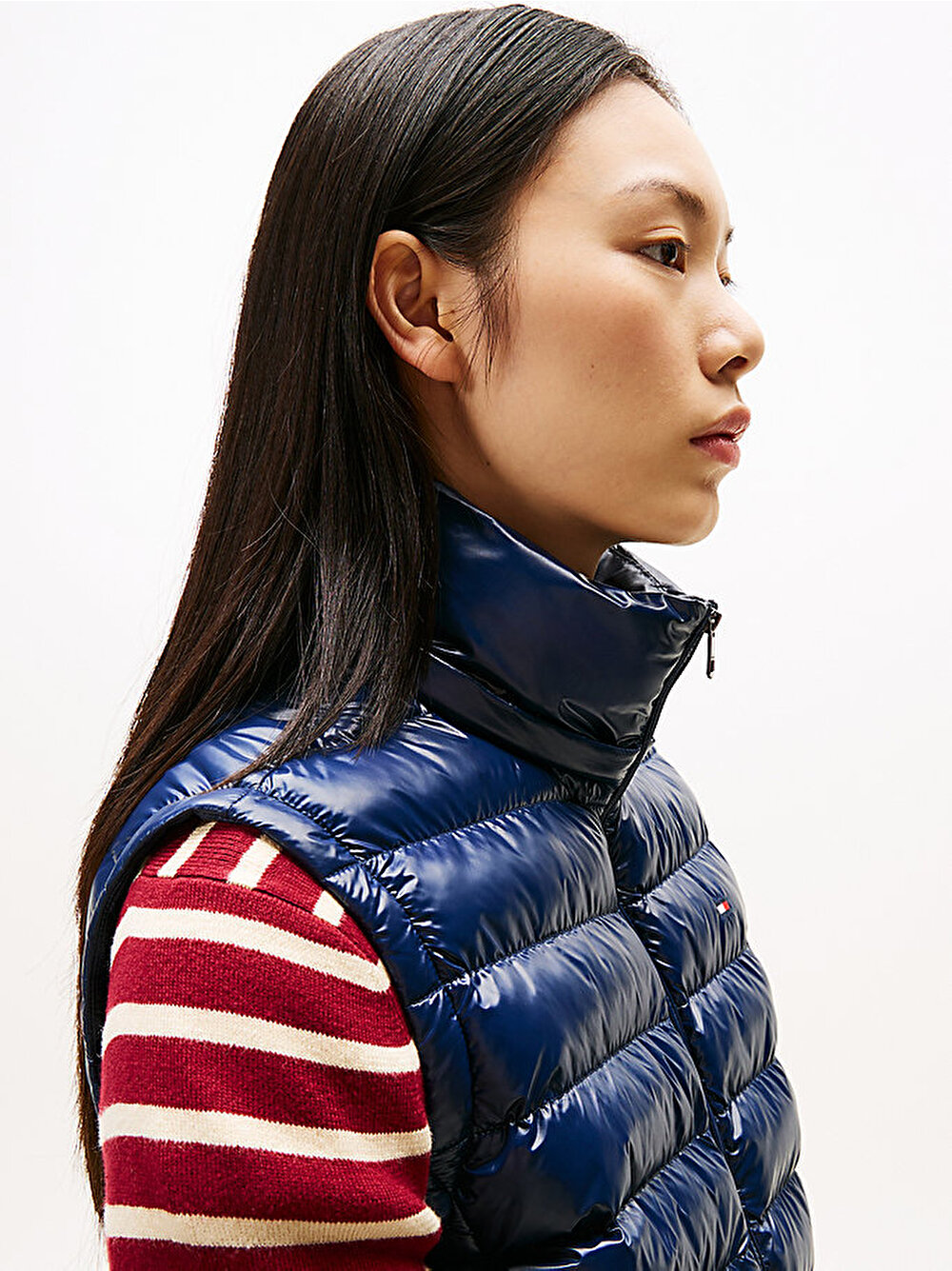 Hafif, toplanabilir ve su itici tasarımıyla, pelüş dolgulu bu slim fit yelek, değişken hava koşulları için vazgeçilmez bir parça.