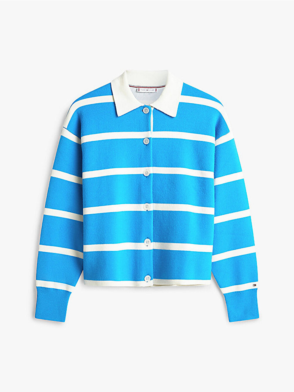 Saf yünden örülen bu rugby hırka, ceket olarak da kullanılabilen sıcacık bir katmanlama parçasıdır.