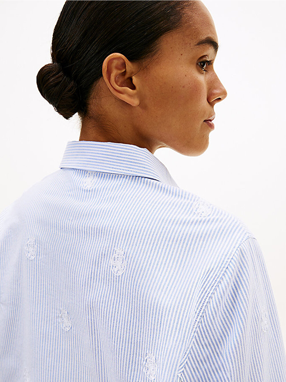 Çağdaş relaxed fit kesimli bu smart Oxford gömlek, TH arma nakışıyla tamamlanarak premium bir görünüm sunar.