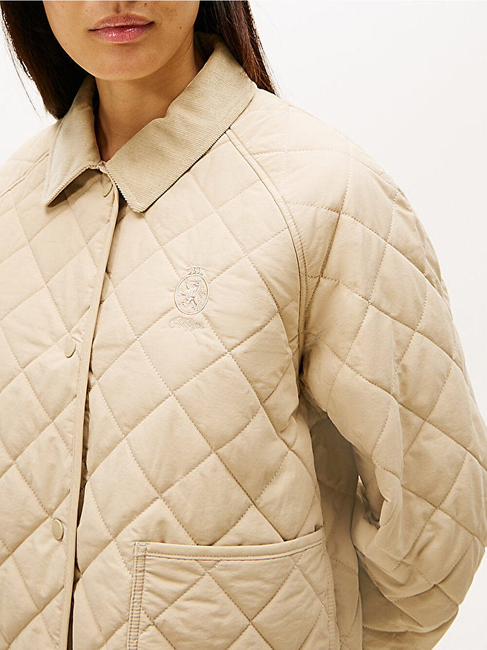 Bu çok yönlü trençkot, elmas kapitone tasarımı ve pratik su itici yüzeyi ile dikkat çekerken, oversized silueti modern bir hava katıyor.