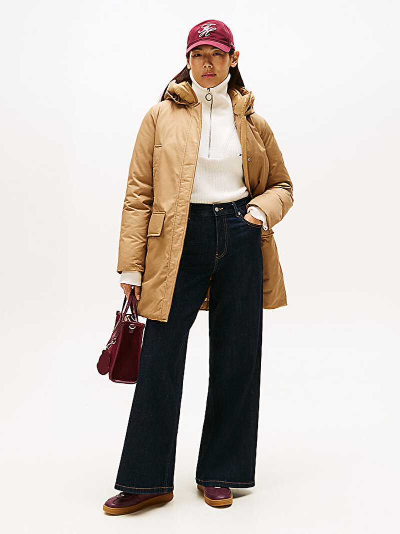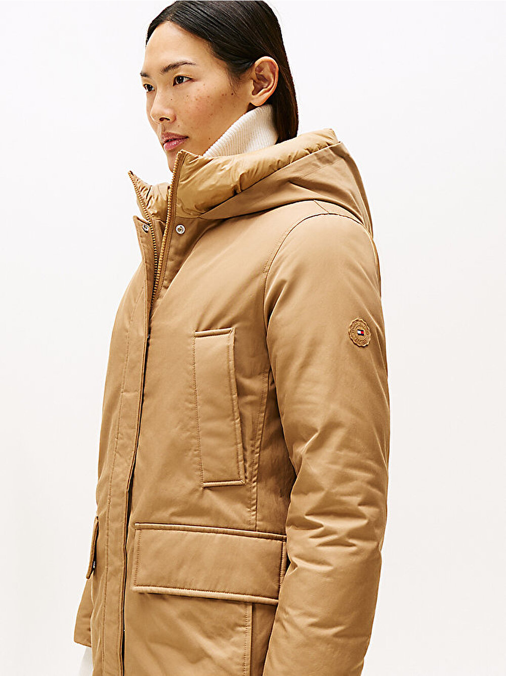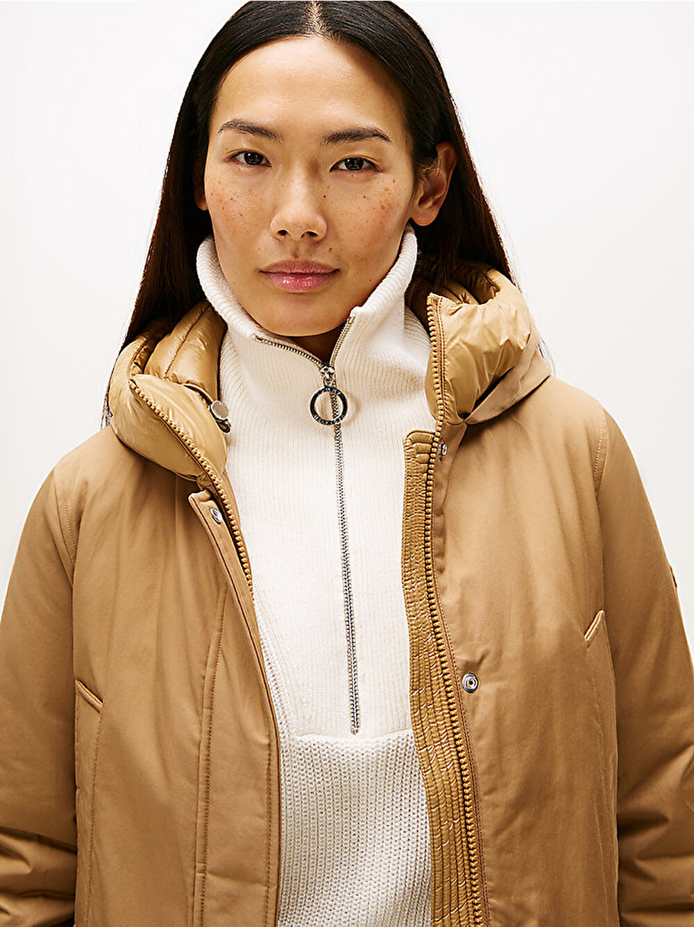 Yumuşak dolgulu yapısı ve kontrast detaylı kapüşonuyla bu parka, modern tasarımı pratik özelliklerle buluşturuyor.