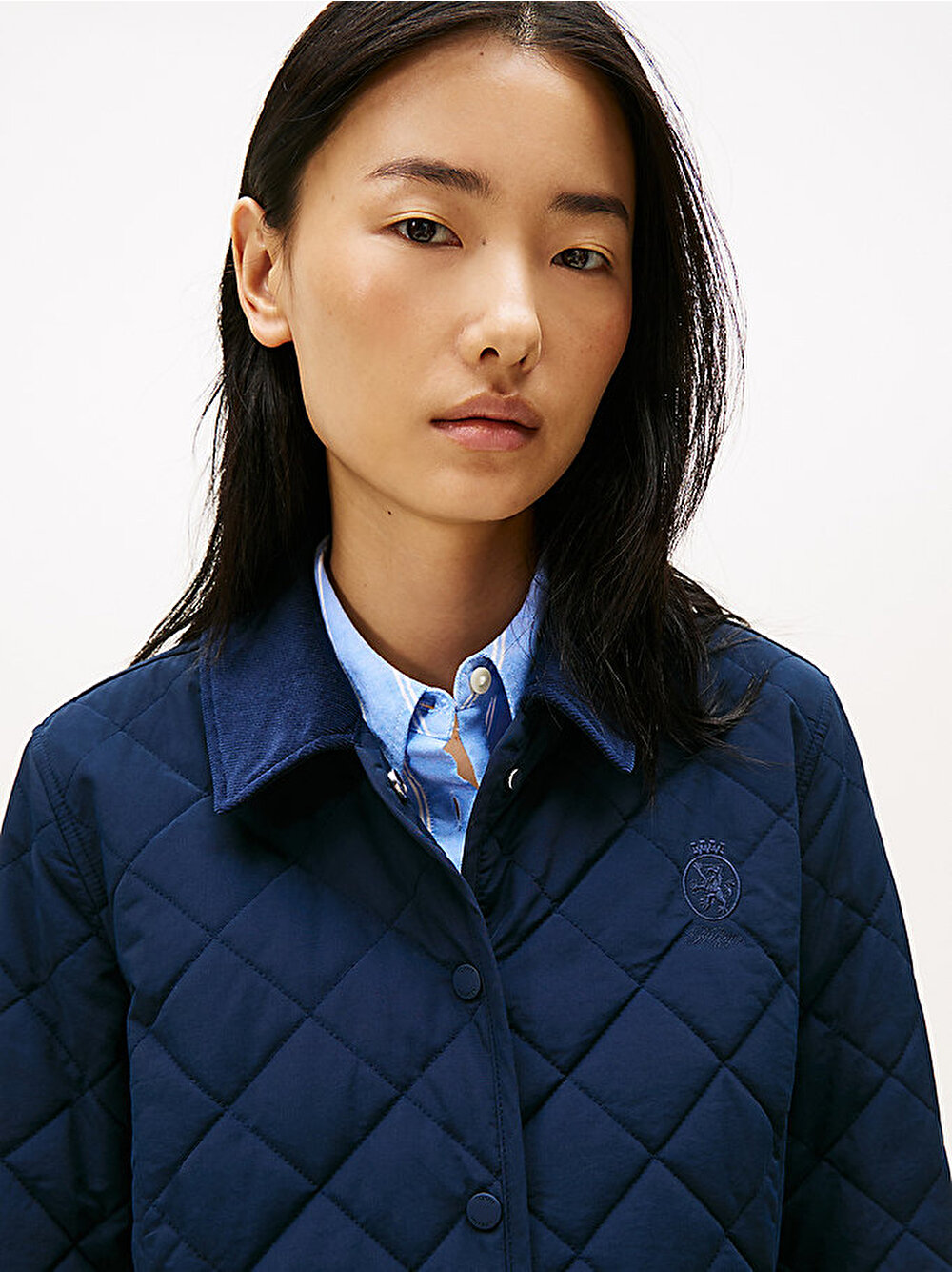 Miras esintilerini modern yorumla buluşturan bu suya dayanıklı dolgulu ceket, elmas desenli kapitone yapısı ve vücuda oturan kesimiyle dikkat çekiyor.