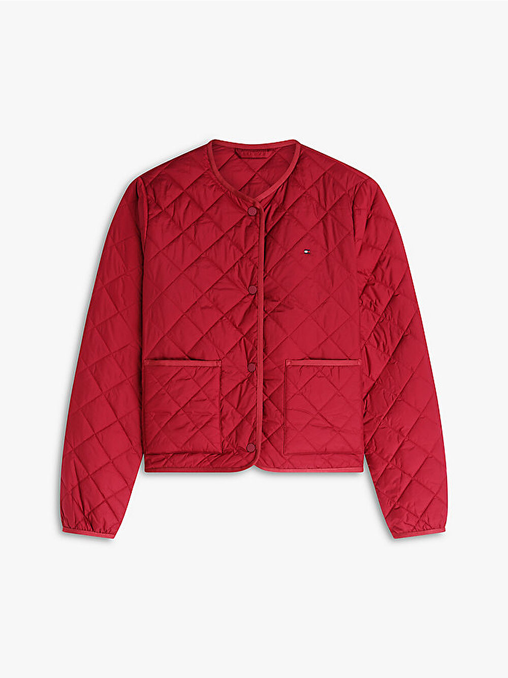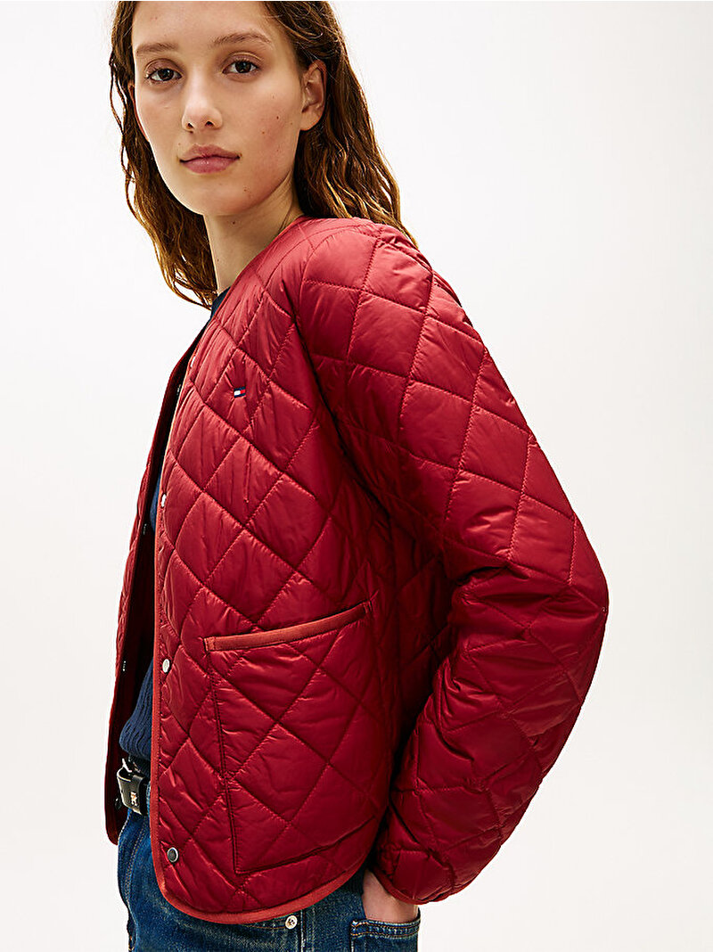 Şık parlak bitişi ve pratik su itici dış yüzeyiyle bu hafif, baklava desenli kapitone ceket ile serin havaların tadını çıkarın.