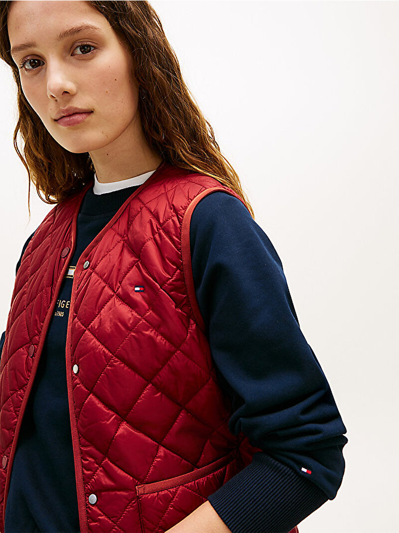 Hafif konforlu dolgusu ve lüks bir görünüm sunan tonal kapitone dikişleriyle bu parlak yelek, ideal bir katmanlama parçasıdır.
