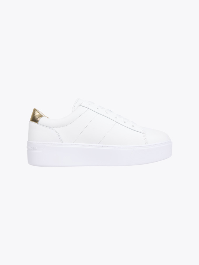 Metalik vurgular bu deri court trainers spor ayakkabıya göz alıcı bir parlaklık katarken, platform tabanı görünümü gerçekten yükseltiyor.Ürün Özellikleri